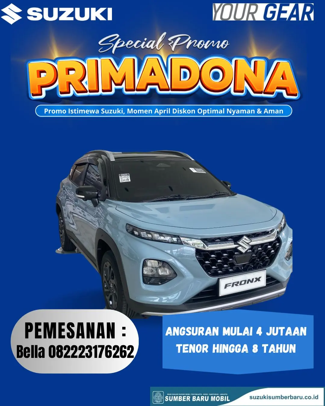 Bagi Anda yang berada di wilayah Bantul dan ingin merasakan langsung sensasi berkendara Suzuki Fronx, segera kunjungi dealer Suzuki Sumber Baru Mobil atau hubungi marketing resmi kami. Jangan sampai melewatkan kesempatan emas ini karena kuota promo terbatas.