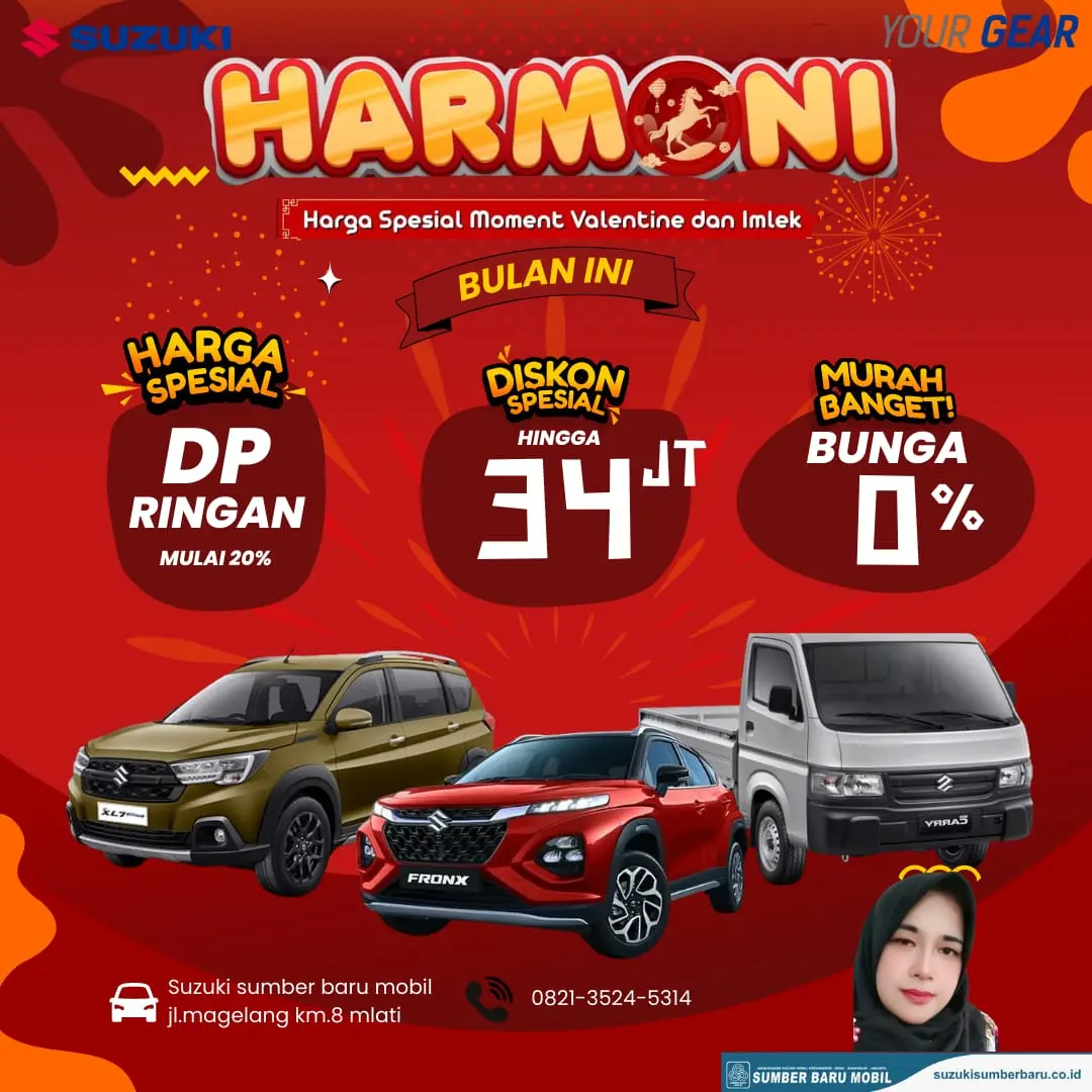 SLEMAN, DIY – Merayakan momen kasih sayang Valentine dan semarak Tahun Baru Imlek, Suzuki Sumber Baru Mobil Mlati resmi meluncurkan program promo spektakuler bertajuk "HARMONI". Program ini hadir sebagai jawaban bagi masyarakat Yogyakarta yang mendambakan mobil baru dengan skema pembiayaan paling ringan di awal tahun 2026.