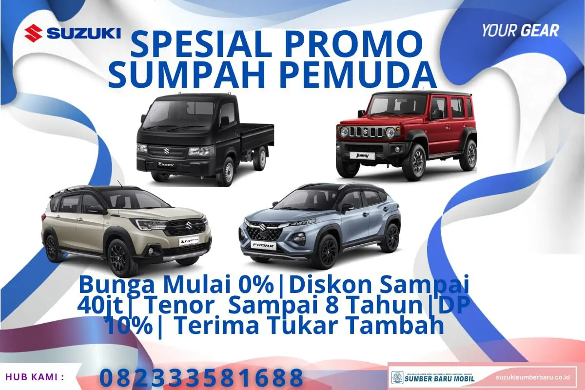 Bantul, Yogyakarta – Momen bersejarah Sumpah Pemuda tahun ini dirayakan dengan kejutan yang benar-benar spektakuler dari Suzuki Sumber Baru Mobil Bantul! Para pencari mobil baru, baik untuk kebutuhan keluarga, gaya hidup, maupun usaha, kini bisa mewujudkan impiannya dengan skema kredit yang belum pernah ada sebelumnya.