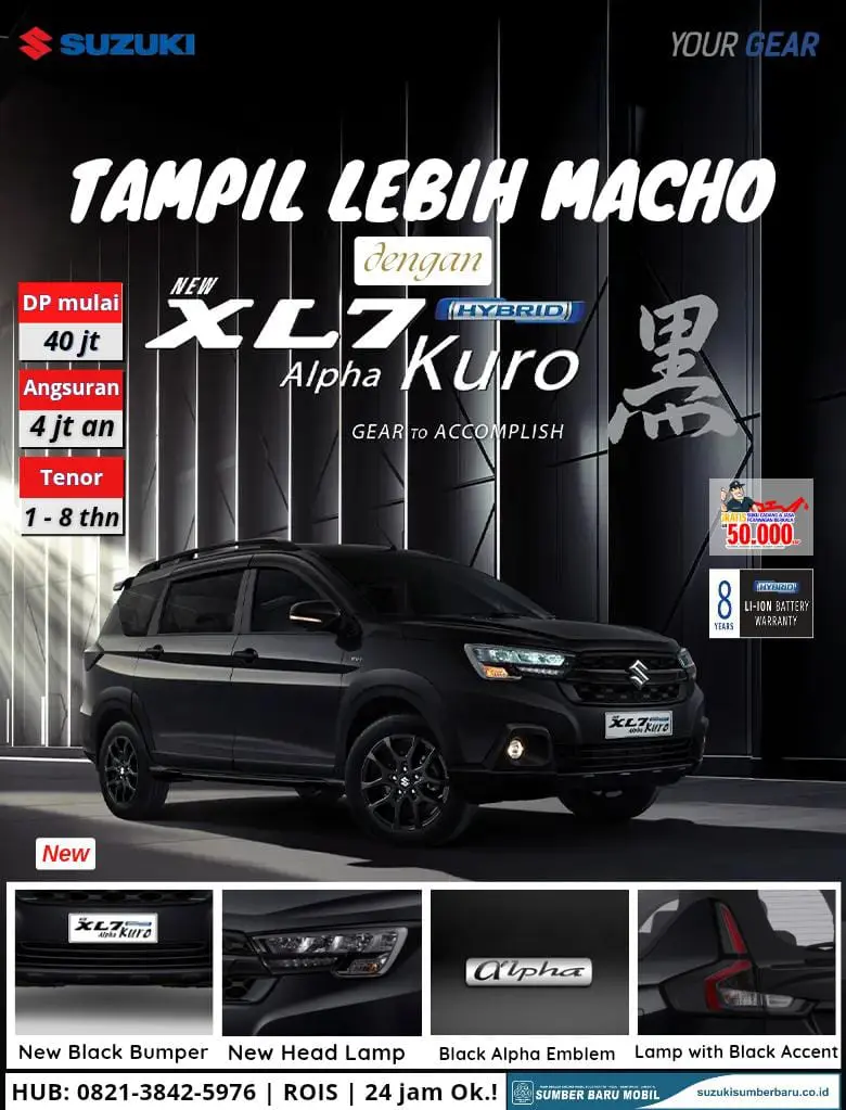 Pernahkah Anda membayangkan memiliki mobil yang tidak hanya stylish tetapi juga membuat Anda tampil lebih percaya diri di setiap perjalanan? Suzuki Sumber Baru Mobil Kebumen punya jawabannya! Kini telah hadir varian terbaru dari Suzuki XL7, yaitu XL7 Hybrid Alpha Kuro, yang siap membuat Anda dan keluarga tampil lebih macho dan berkelas.