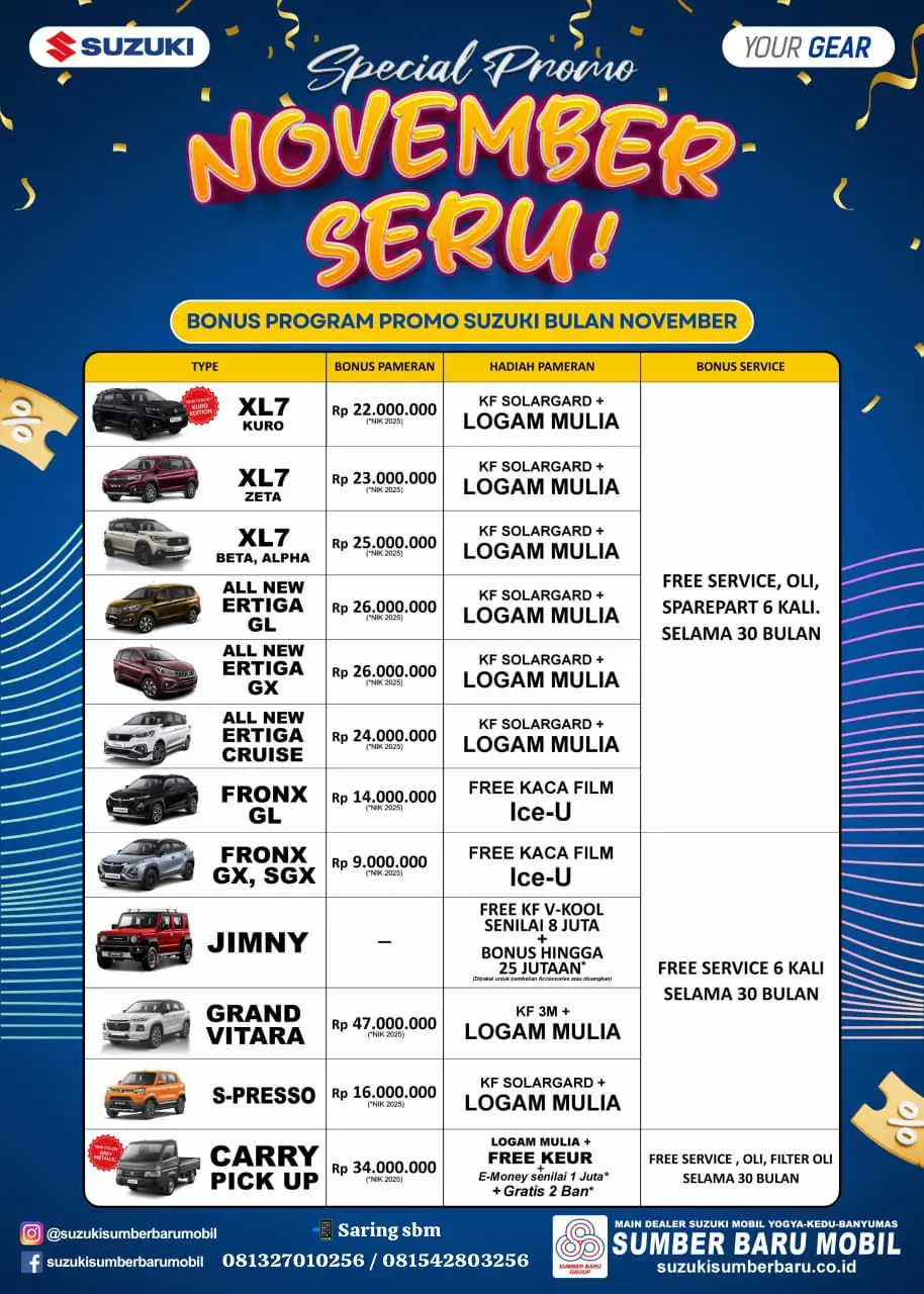 BOCORAN! Daftar Lengkap Bonus Suzuki hingga Rp 47 Juta di Kroya!