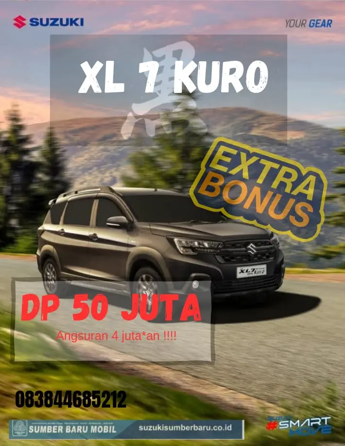 Seperti terlihat pada materi iklan, kini Anda bisa memiliki Suzuki XL 7 KURO yang gagah dengan skema yang super ringan: