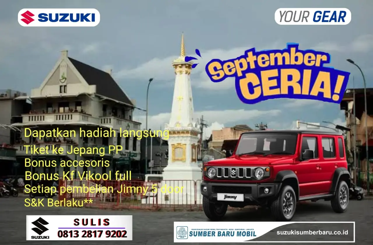 Promo ini berlaku terbatas dan syarat serta ketentuan berlaku. Untuk informasi lebih lanjut, jangan ragu untuk menghubungi Marketing Suzuki di nomor telepon yang tertera. Atau, Anda bisa langsung mengunjungi website resmi mereka di suzukisumberbaru.co.id. Dapatkan informasi lengkap dan wujudkan impian Anda untuk memiliki Suzuki Jimny 5-door sekaligus merasakan petualangan seru ke Jepang!