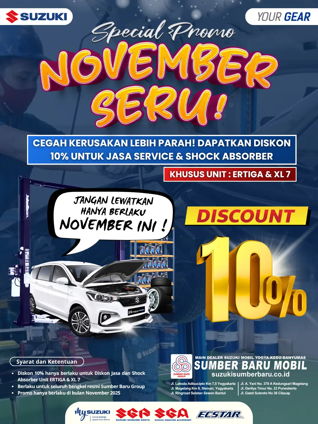 PENTING: Promo ini berlaku KHUSUS UNTUK UNIT SUZUKI ERTIGA & SUZUKI XL7.