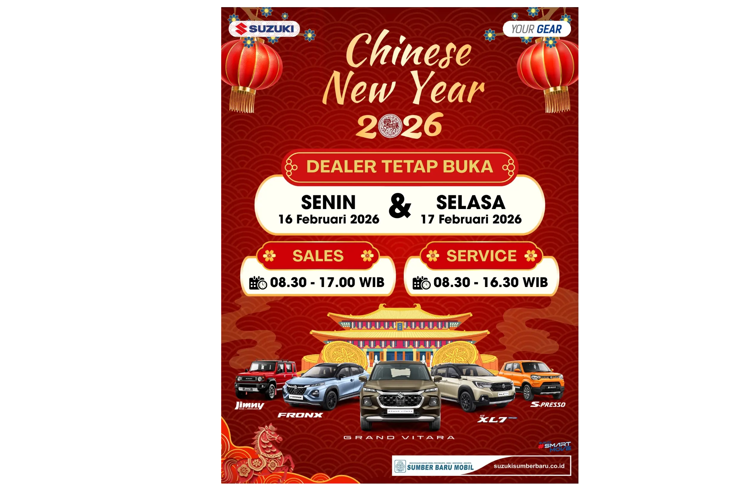 Memahami kebutuhan mobilitas warga Kroya yang dinamis, baik laki-laki maupun perempuan di rentang usia 25-65 tahun, Suzuki Sumber Baru menghadirkan paket "Bulan Keberuntungan"🧧✨: