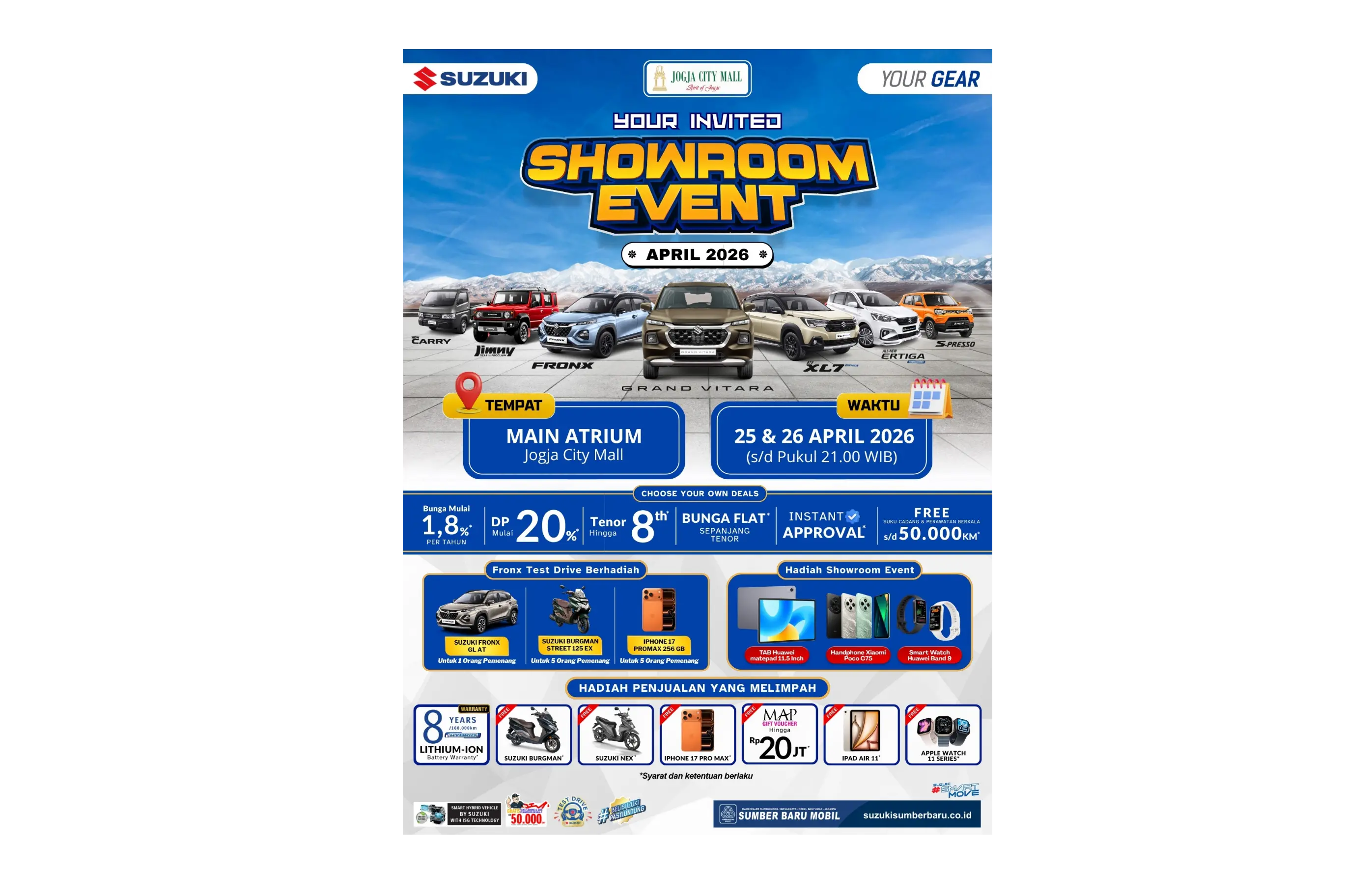 CILACAP – Sebagai bentuk kontribusi nyata terhadap program ketahanan pangan dan gizi Suzuki Majenang Sumber Baru Mobil resmi memperkenalkan lini terbaru Suzuki New Carry Pick Up Box NIK 2026. Armada ini dipersiapkan secara khusus untuk mendukung operasional Satuan Pelayanan Pemenuhan Gizi atau Badan Gizi Nasional (MBG) di wilayah Majenang dan sekitarnya.