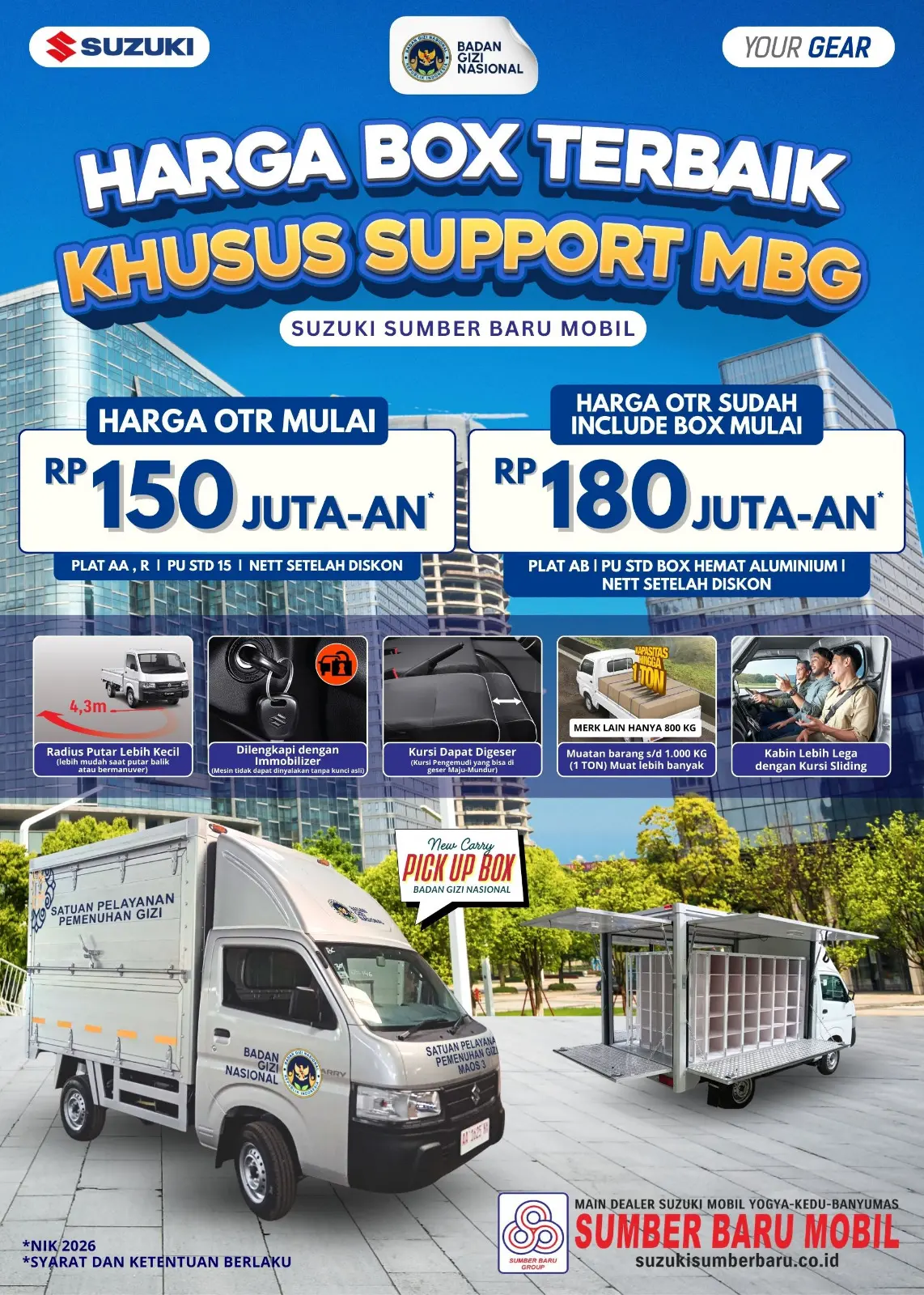 Suzuki Majenang memberikan penawaran harga spesial (Nett setelah diskon) khusus untuk unit NIK 2026 guna mendukung kelancaran distribusi gizi: