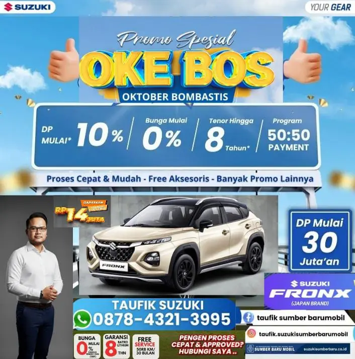 GEGER! DP Suzuki FRONX Hybrid Cuma Rp30 Juta-an, Dapat CASHBACK Rp15 Juta! Promo "OKE BOS" Oktober Paling Gila di Suzuki Sumber Baru MLATI!