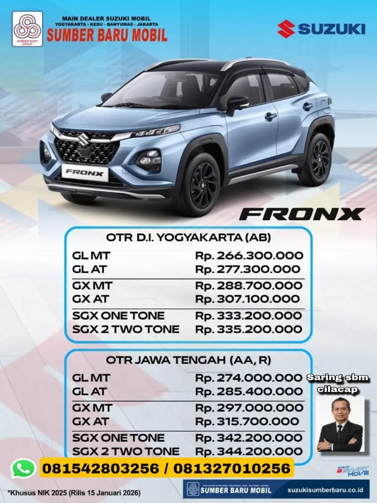 Hanya 200 Jutaan? Suzuki Fronx 2026 Jadi Penantang Baru di Kelas SUV, Cek Promo Suzuki Sumber Baru Sekarang!