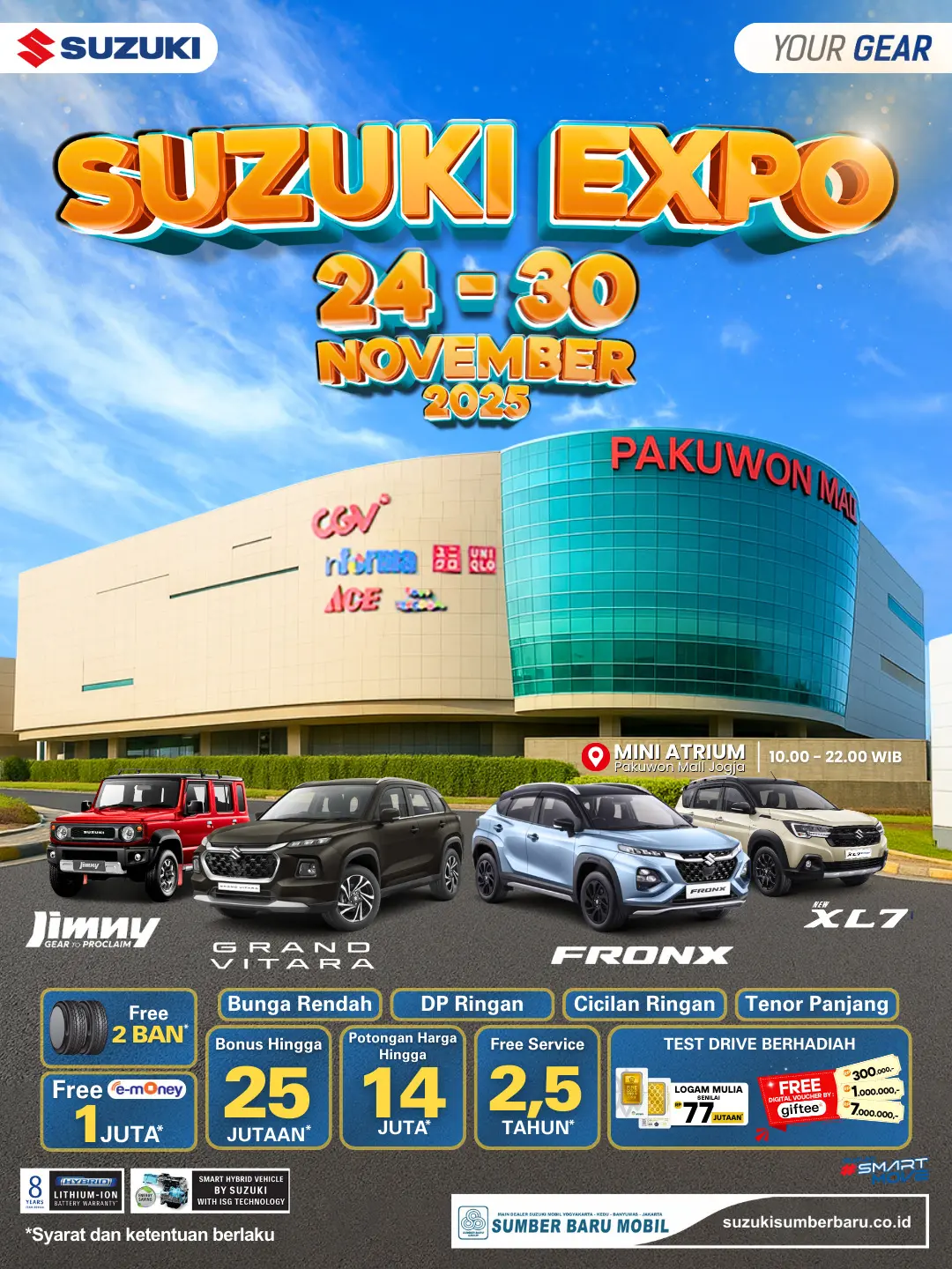 HARI INI DIBUKA! Suzuki Expo Pakuwon Mall Jogja: Banjir Bonus 25 Juta & Test Drive Berhadiah Emas!