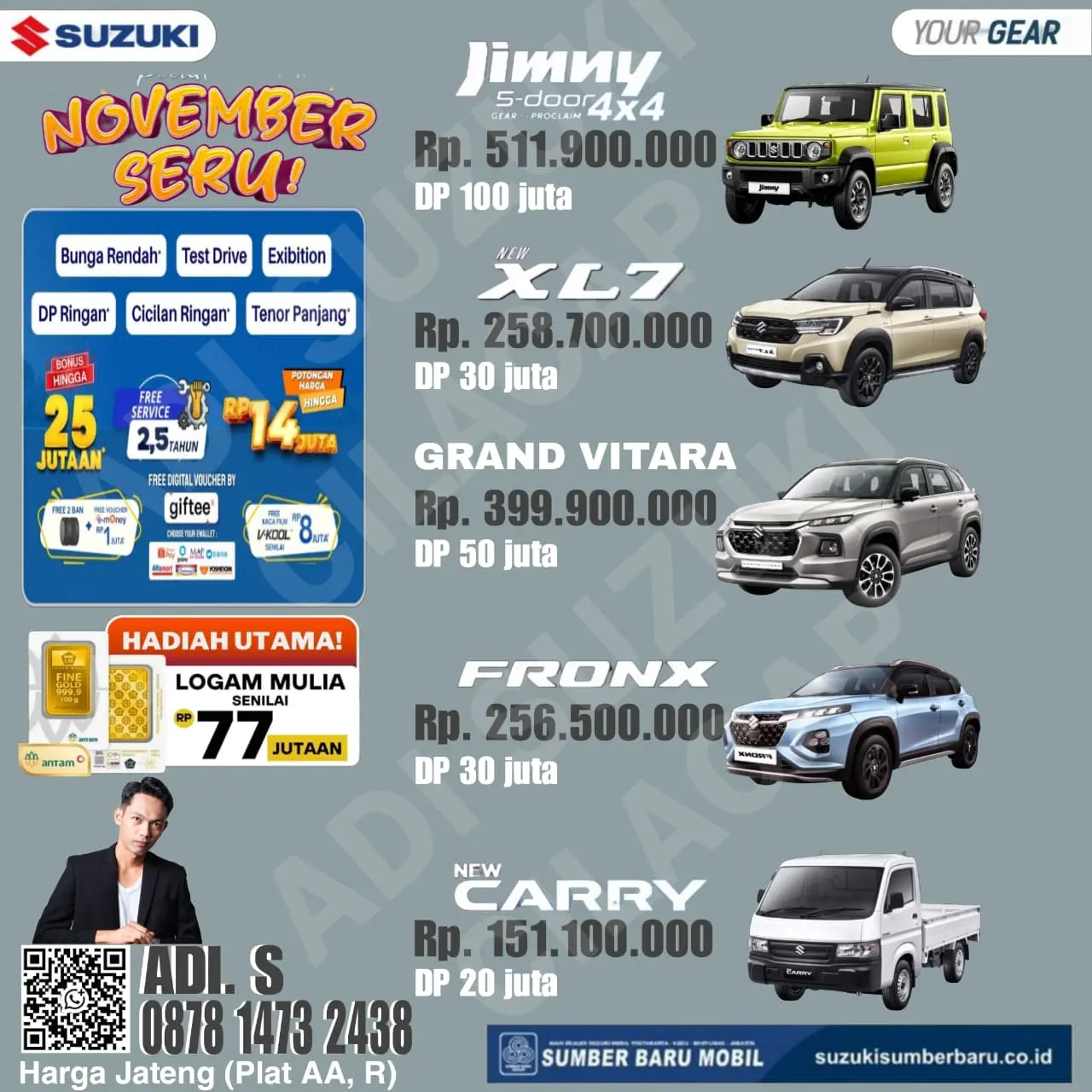 Tak hanya kemudahan dalam pembelian, setiap transaksi yang dilakukan selama promo "NOVEMBER SERU!" ini berkesempatan memenangkan hadiah utama LOGAM MULIA SENILAI Rp 77 JUTA! Ini adalah momen yang sangat tepat untuk berinvestasi sekaligus memiliki kendaraan baru.