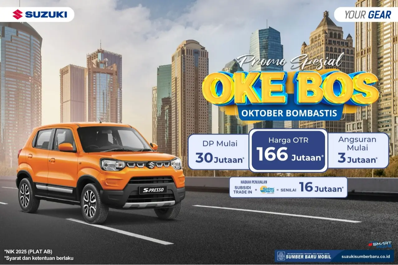 "Jujur, budget saya awalnya hanya cukup untuk cari mobil bekas tahun muda. Iseng-iseng saya cek website suzukisumberbaru.co.id dan lihat promo OKE BOS. Saya kaget setengah mati lihat harga S-Presso baru cuma 150 jutaan. Langsung saya hubungi marketingnya untuk memastikan, dan ternyata benar! Tanpa pikir panjang, saya langsung booking. Dapat mobil baru, wangi dealer, ada garansi, dengan harga sekelas mobil bekas. Benar-benar rejeki!"