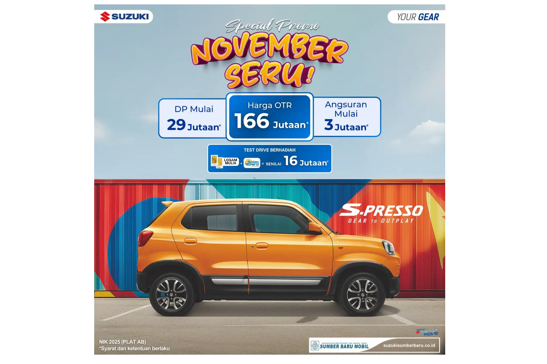 BANTUL – Kabar paling menguntungkan bagi para pelaku usaha, pedagang pasar, dan juragan di wilayah Bantul (Sewon, Kasihan, Imogiri, Kretek, dan sekitarnya) akhirnya tiba! Suzuki Sumber Baru Mobil Bantul kembali membuktikan komitmennya untuk memajukan ekonomi lokal dengan meluncurkan program "Special Promo NOVEMBER SERU!". Fokus utama promo kali ini adalah "Rajanya Pick-Up", Suzuki New Carry (NIK 2025). Tidak tanggung-tanggung, Suzuki Bantul memberikan paket kepemilikan armada usaha yang sangat ringan, ditambah dengan banjir hadiah senilai total puluhan juta rupiah!