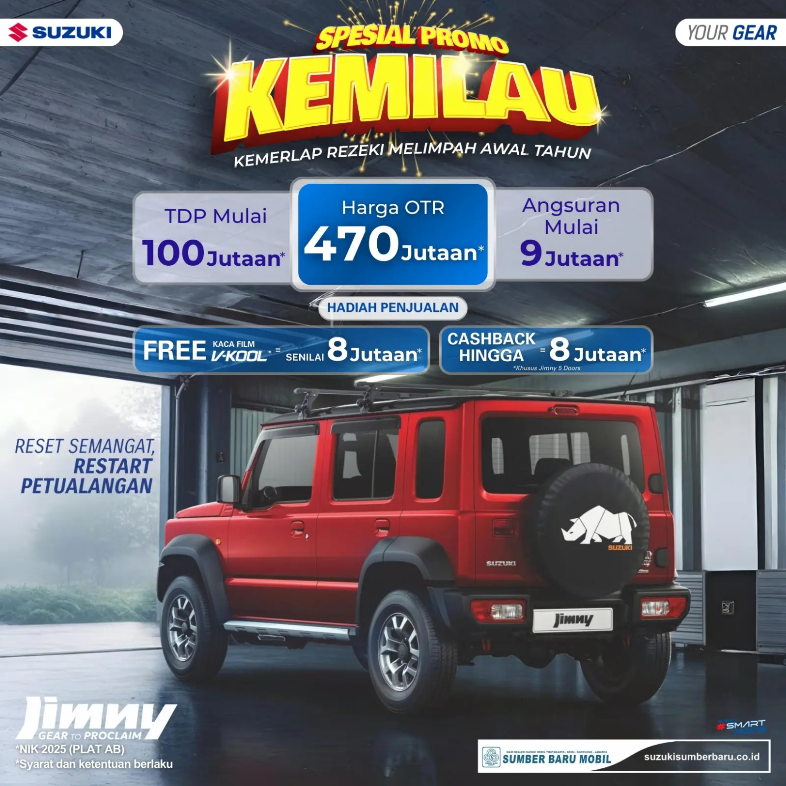 Cashback Fantastis: Potongan langsung hingga 8 Juta Rupiah (khusus tipe Jimny 5-Doors).