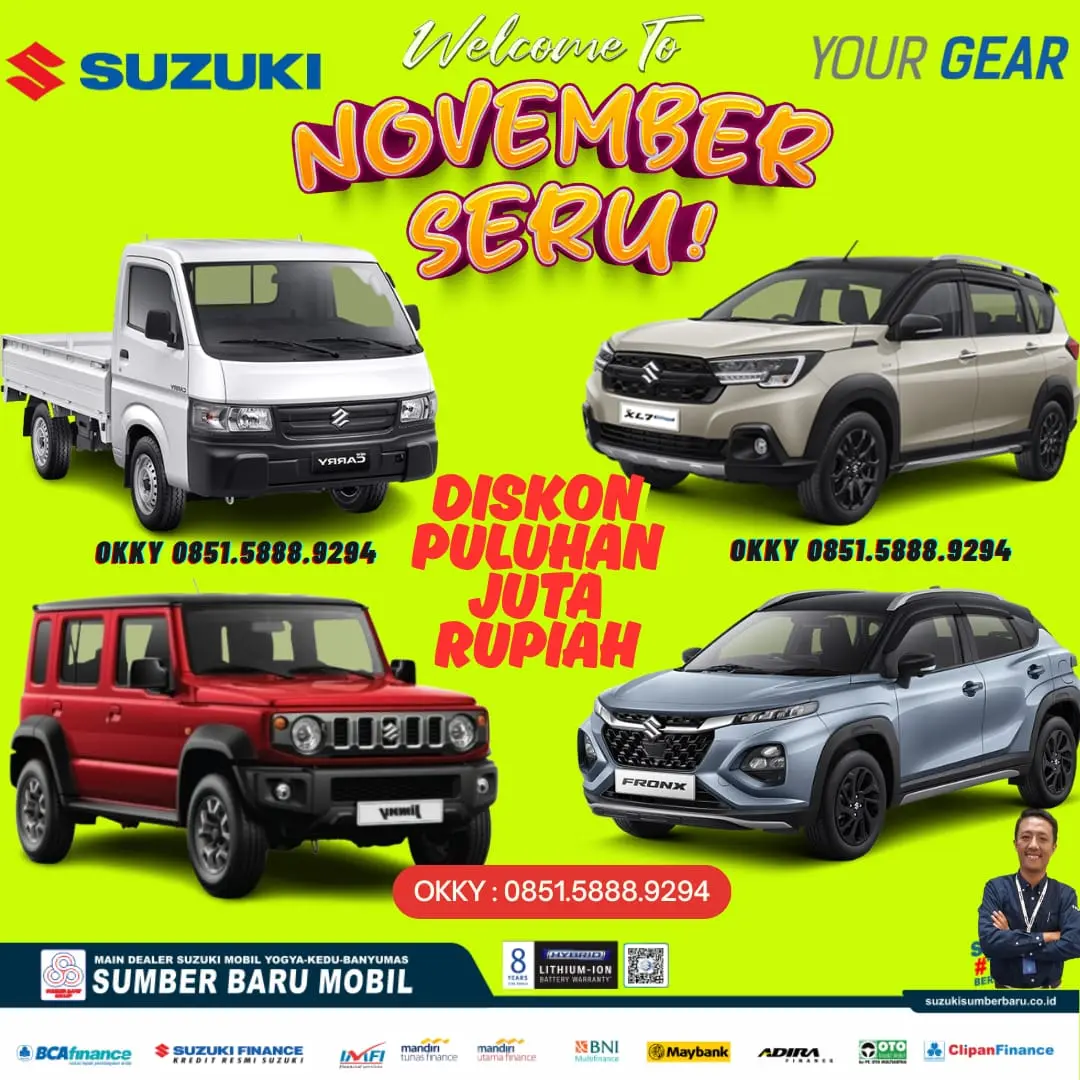SLEMAN, SUZUKISUMBERBARU.CO.ID – Kabar paling "SERU" dan menggembirakan datang untuk warga Mlati, Sleman, dan sekitarnya! Di bulan penuh berkah ini, Suzuki Sumber Baru Mobil Mlati secara resmi merilis program "NOVEMBER SERU!".