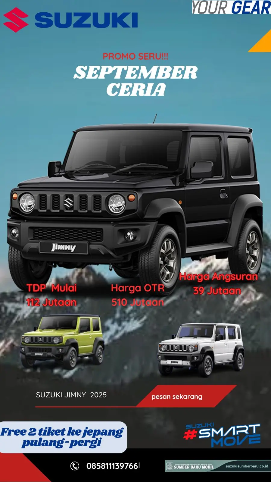 Bulan September ini adalah momen yang paling ditunggu-tunggu bagi para pecinta otomotif, terutama Anda yang berdomisili di sekitar Suzuki Kebumen Sumber Baru Mobil. Dapatkan kesempatan langka untuk memiliki mobil legendaris, Suzuki Jimny 2025, melalui promo September Ceria yang super menarik!