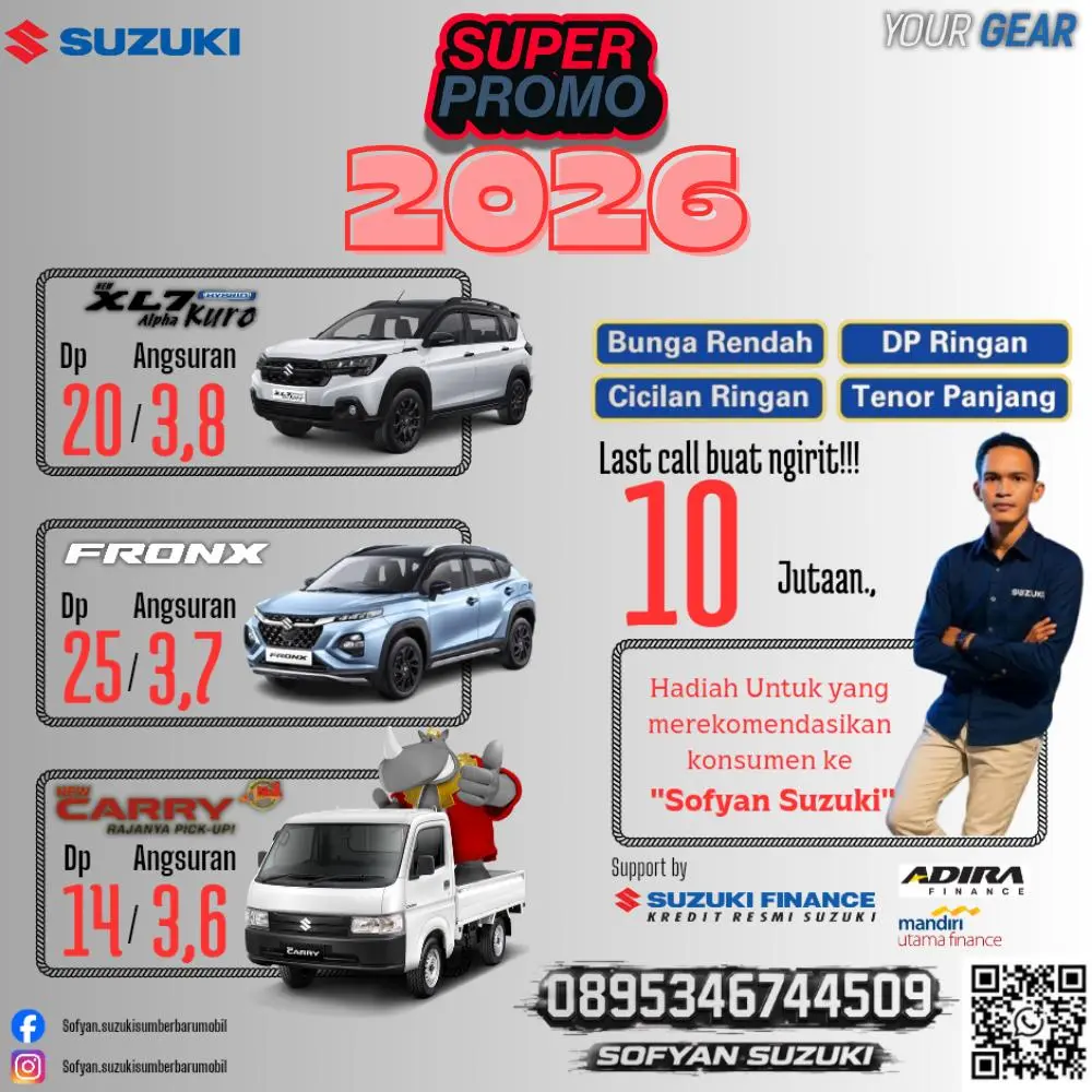 Traffic kunjungan ke dealer terus meningkat setiap harinya. Pastikan Anda tidak ketinggalan momen langka ini. Dapatkan konsultasi gratis, simulasi kredit yang transparan, dan pelayanan terbaik dari Sofyan Suzuki.