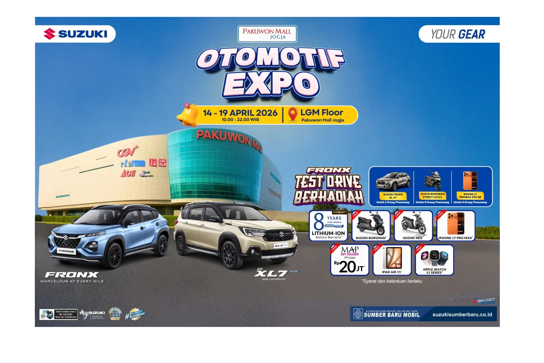 Ini adalah kesempatan langka yang tidak datang dua kali. Dapatkan mobil off-road legendaris Suzuki Jimny sekaligus paket liburan impian ke Negeri Sakura. Promo ini berlaku di seluruh cabang Suzuki Sumber Baru Mobil DIY.
