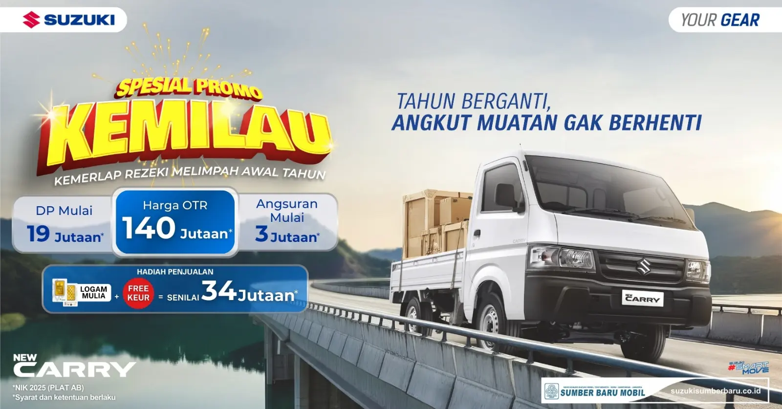 WONOSOBO – Kabar gembira bagi para pelaku UMKM dan pengusaha di wilayah Wonosobo dan sekitarnya. Memasuki awal tahun 2026, Suzuki Sumber Baru Mobil resmi meluncurkan program "Promo Kemilau" khusus untuk unit legendaris, Suzuki New Carry Pick Up.