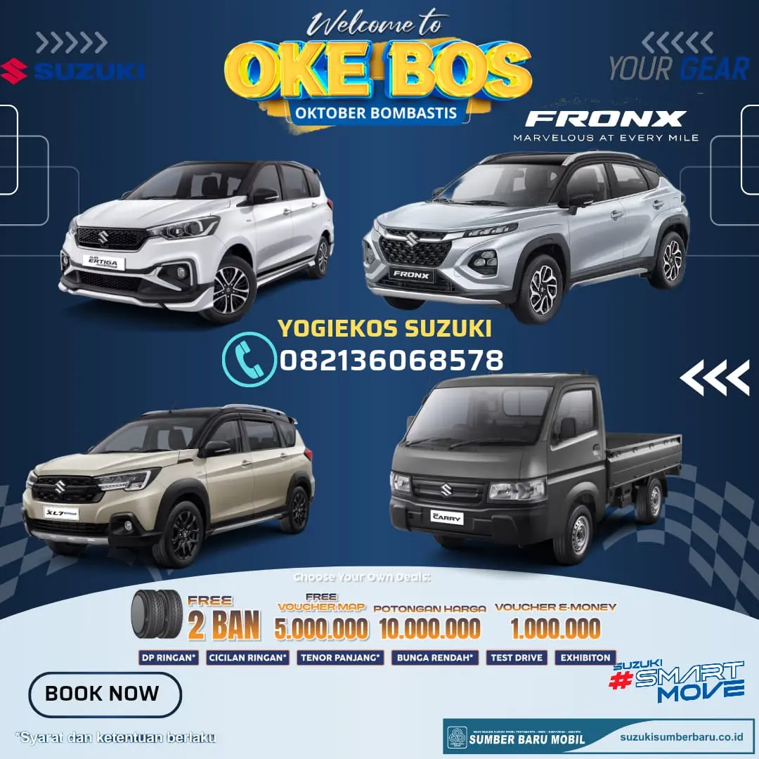 KROYA – Warga Kroya dan sekitarnya, siapkan diri Anda untuk menyambut bulan yang penuh kejutan! Suzuki Sumber Baru Mobil Kroya menghadirkan promo paling heboh di bulan ini: "OKE BOS: Oktober Bombastis"! Ini adalah kesempatan emas bagi Anda untuk memiliki mobil Suzuki impian dengan berbagai penawaran yang bisa Anda pilih sendiri! Jangan sampai terlewat!