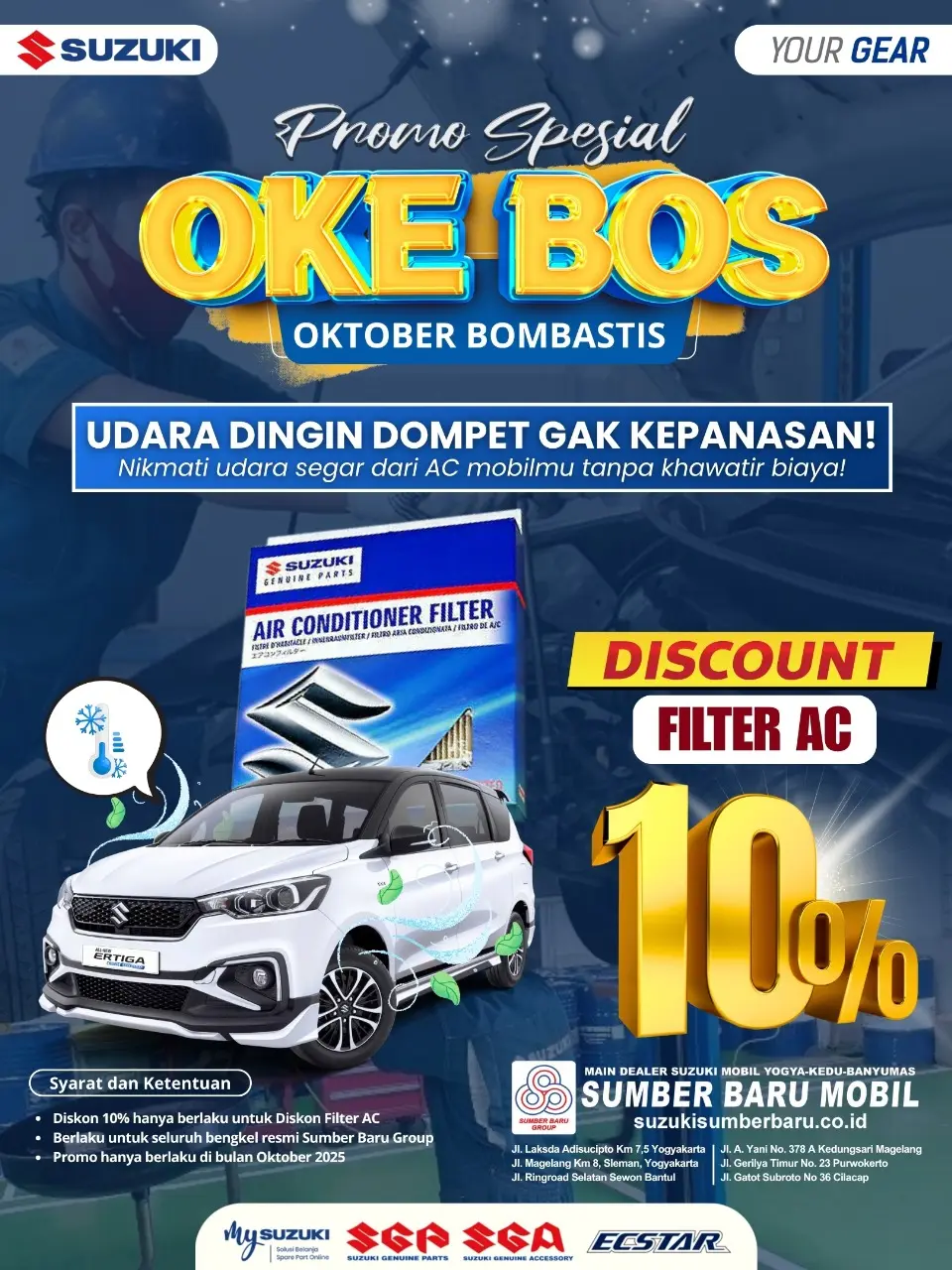 Bagi Anda yang mencari promo servis Suzuki Yogyakarta, bengkel resmi Suzuki Kedu, atau perawatan mobil Suzuki di Banyumas, ini adalah waktu yang paling tepat untuk melakukan servis berkala sekaligus mengganti filter AC Anda.