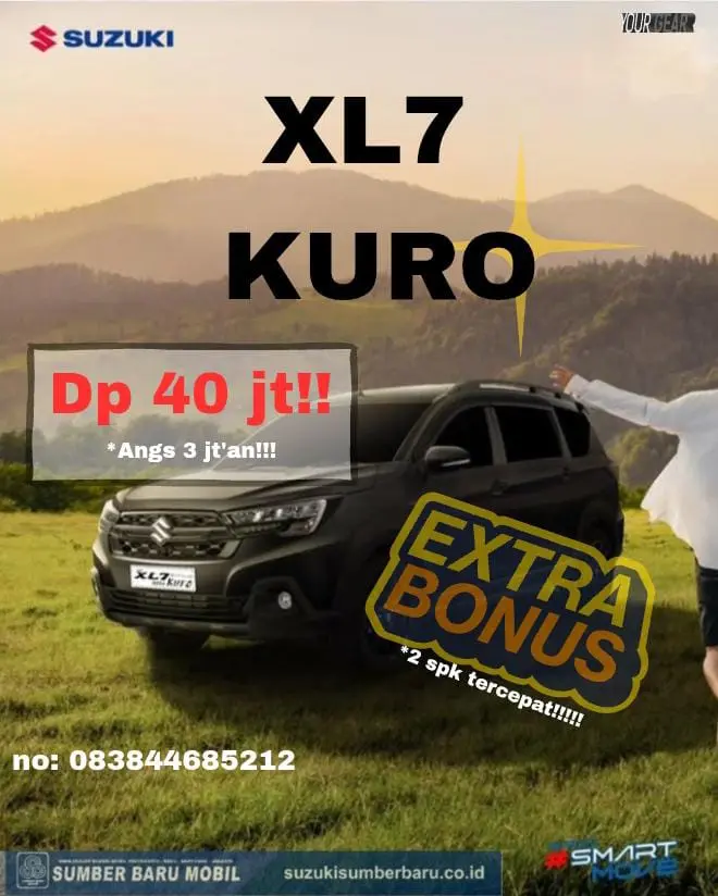 Suzuki Wonosari secara khusus memberikan penawaran gila untuk SUV 7-seater paling ganas saat ini, New Suzuki XL7 Hybrid KURO Edition. Anda bisa membawanya pulang dengan DP (Uang Muka) HANYA 40 JUTA dan ANGSURAN SUPER RINGAN 3 JUTAAN per bulan!