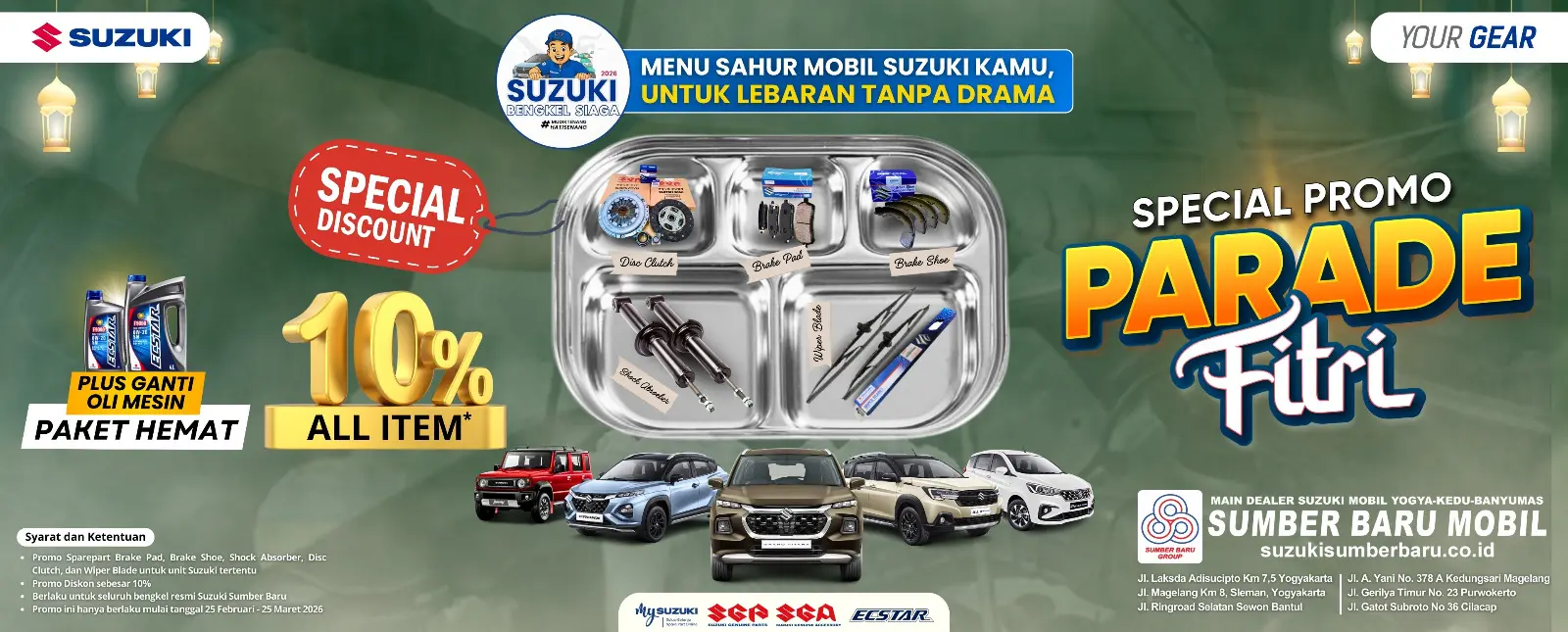 Persiapan Mudik 2026: Suzuki Sumber Baru Mobil Wonosobo Hadirkan Promo Parade Fitri, Diskon Sparepart 10%