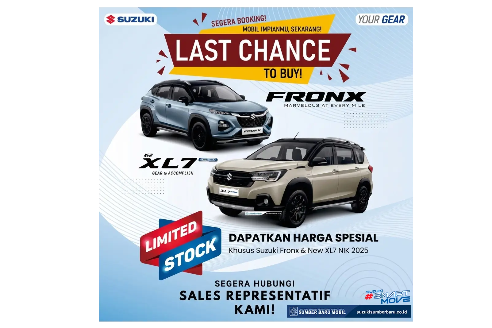 Ingin merasakan kenyamanan dan performa mobil Suzuki secara langsung? Segera booking test drive dan nikmati pengalaman berkendara terbaik bersama Suzuki. Jangan lewatkan kesempatan ini karena stok terbatas!