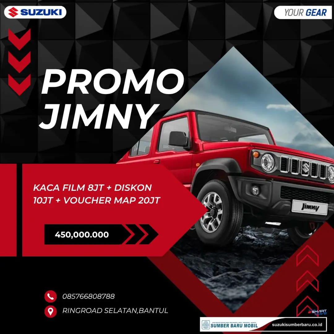 Dengan harga penawaran mulai dari Rp450.000.000,-, paket ini menjadikannya salah satu penawaran Suzuki Jimny paling kompetitif di pasar otomotif Yogyakarta saat ini.