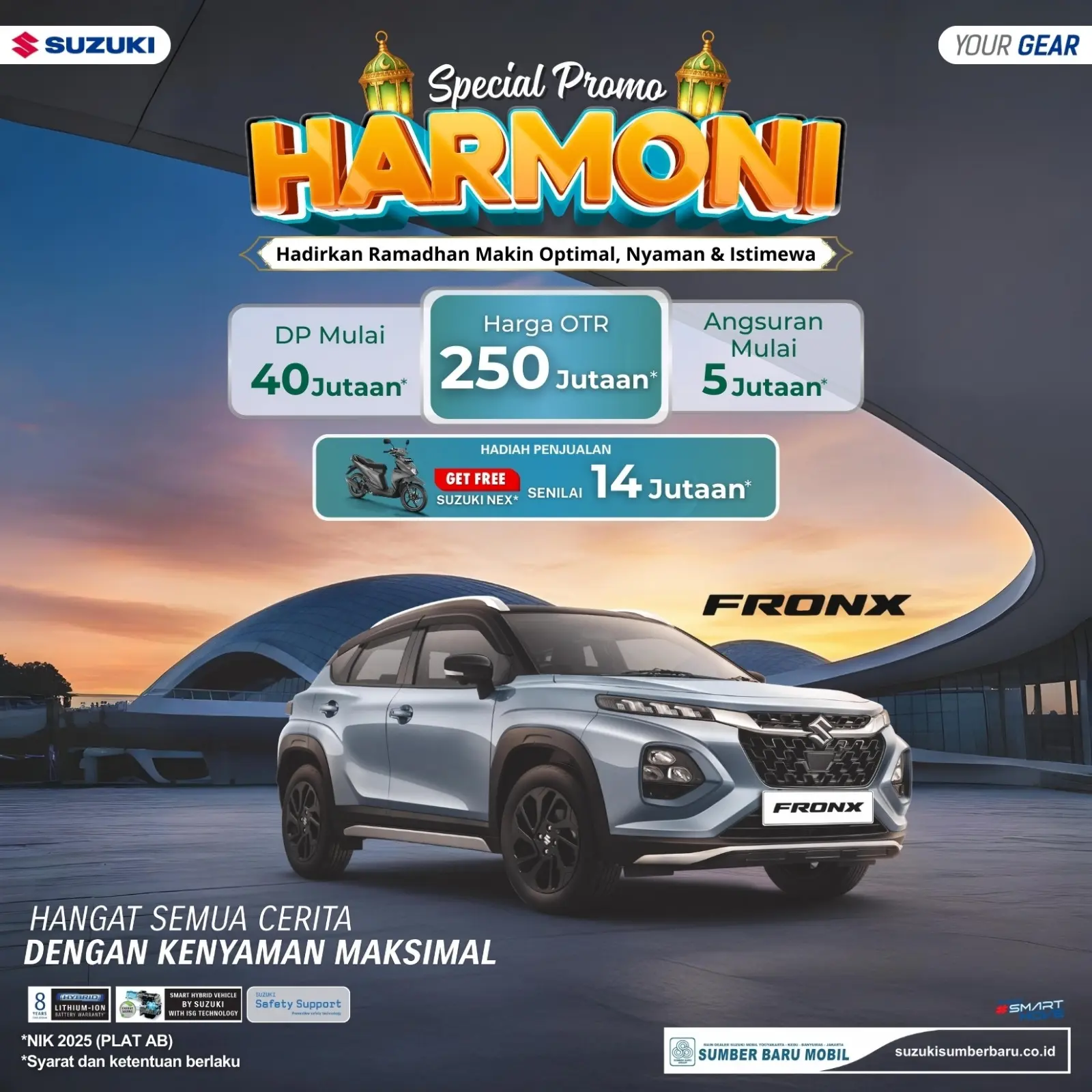 Promo HARMONI Suzuki Jogja 2026: Beli Suzuki Fronx Gratis Motor Suzuki NEX, Lebaran Jadi Makin Istimewa!