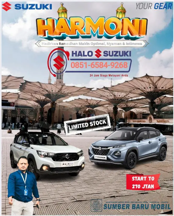 Yogyakarta – Menyambut momen spesial Ramadan dan Idul Fitri 2026, Suzuki Mlati Sumber Baru Mobil menghadirkan program istimewa bertajuk Promo Harmoni Suzuki. Program ini menawarkan kemudahan memiliki mobil impian seperti Suzuki XL7 Hybrid dan Suzuki Fronx dengan harga mulai 270 jutaan dan berbagai keuntungan eksklusif lainnya.