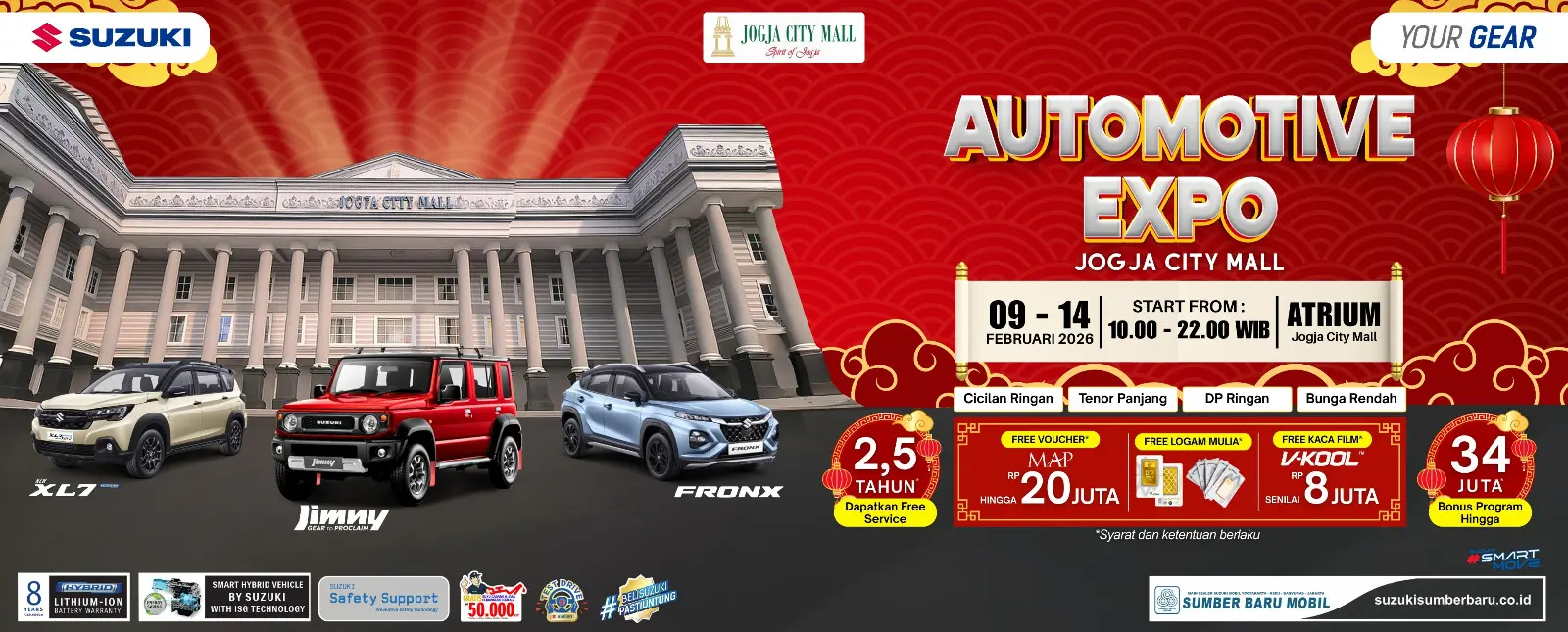 Promo Imlek Suzuki Jogja 2026: Banjir Bonus 34 Juta & Hadiah Logam Mulia di Automotive Expo JCM!