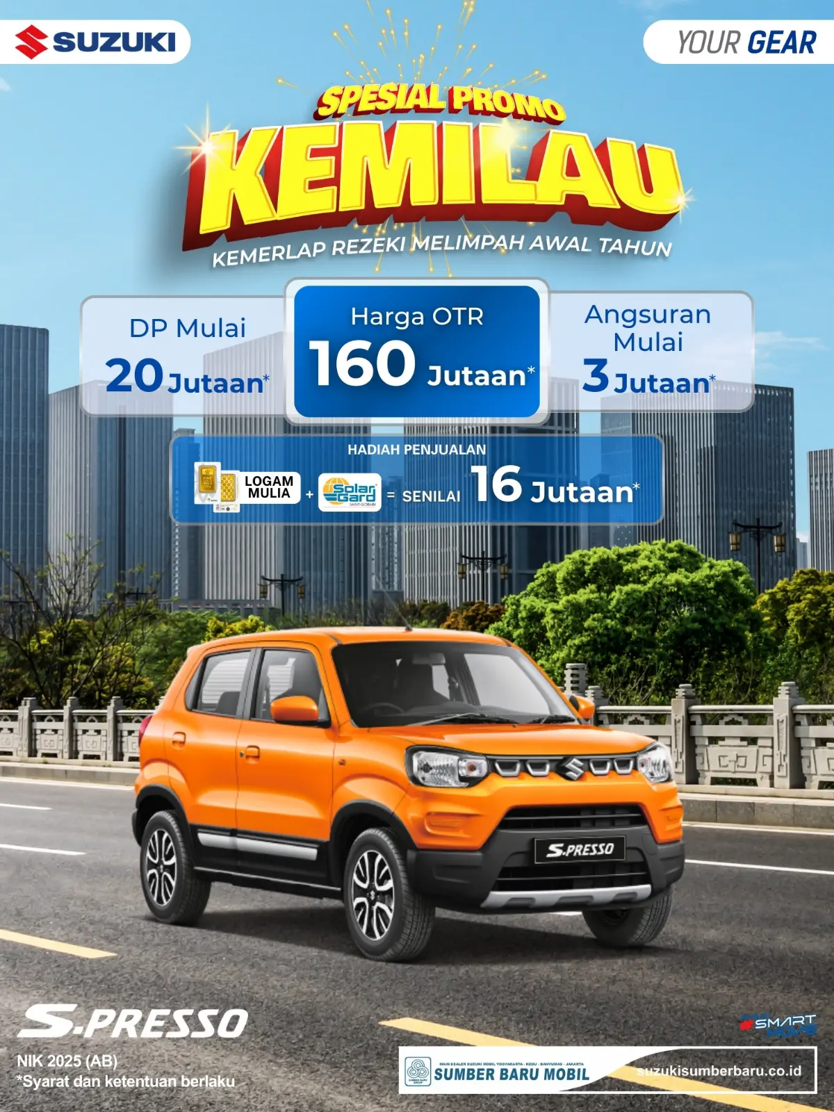 "Kami paham kebutuhan warga Gunungkidul. Melalui Promo Kemilau, cukup dengan DP mulai 20 Jutaan, unit S-Presso sudah bisa dibawa pulang. Angsurannya pun ringan, mulai 3 Jutaan per bulan. Ini sangat cocok untuk PNS, pedagang pasar, maupun pengusaha pariwisata yang ingin upgrade kendaraan," ujar perwakilan Marketing Suzuki Sumber Baru Mobil Wonosari.