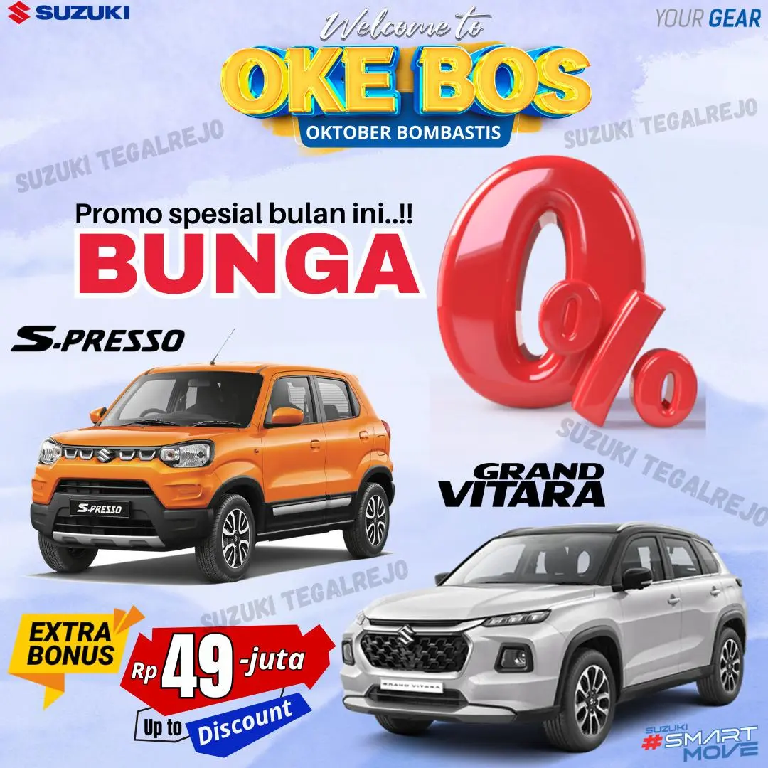 Kesempatan Emas memiliki Suzuki S-Presso atau Grand Vitara dengan BUNGA 0% dan DISKON HINGGA 49 JUTA hanya ada di depan mata dan sangat terbatas selama bulan Oktober 2025.
