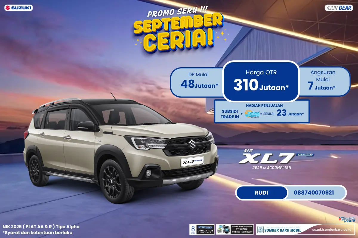 Bagi Anda yang tinggal di Cilacap dan sekitarnya, inilah saat yang tepat untuk memiliki mobil keluarga impian. Suzuki Sumber Baru Mobil Cilacap menghadirkan promo "September Ceria" dengan penawaran luar biasa untuk pembelian Suzuki XL7 Hybrid tipe Alpha. Penawaran ini bukan hanya sekadar diskon, tetapi juga kesempatan untuk mendapatkan keuntungan besar yang membuat impian Anda lebih cepat tercapai.