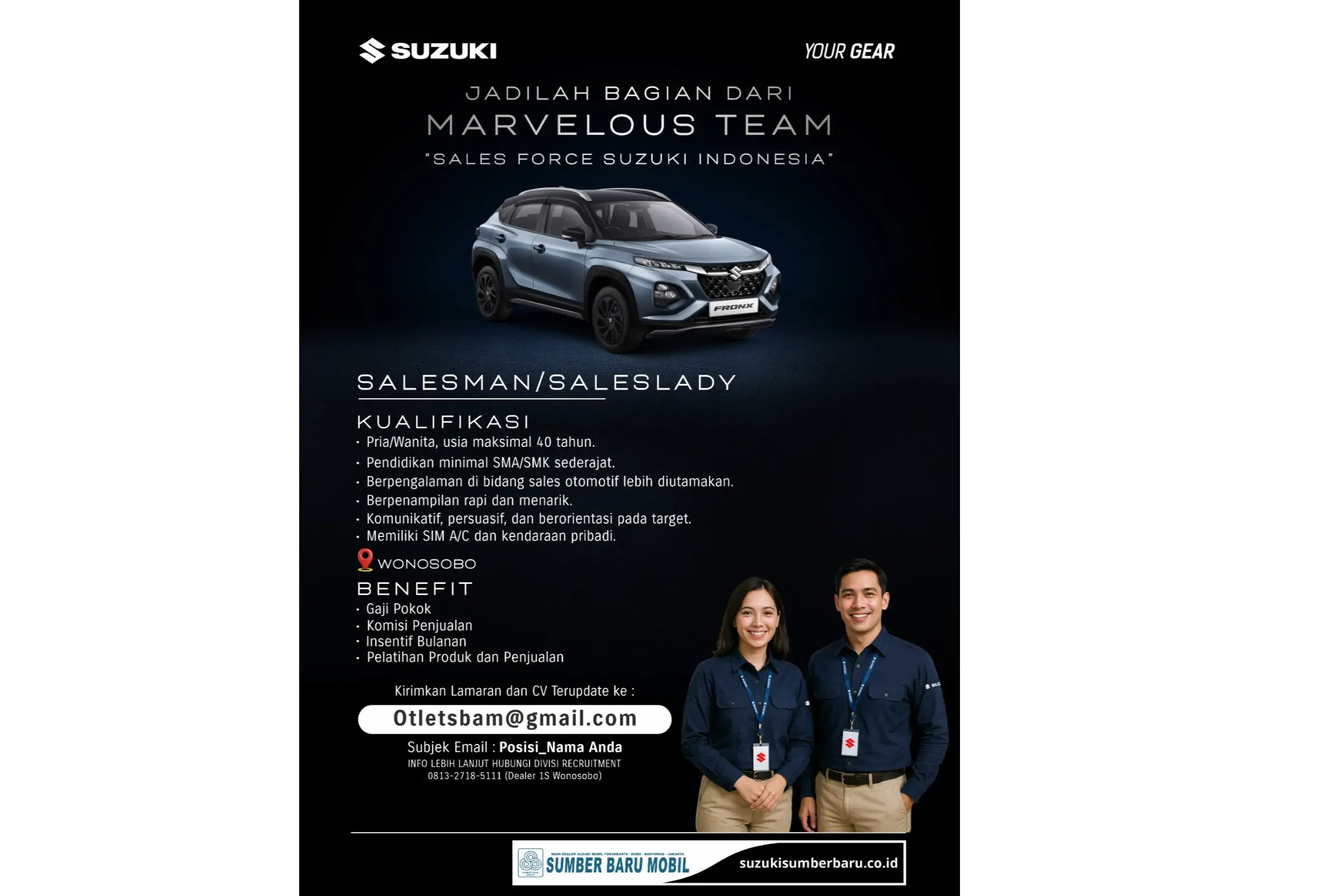 "Saya sudah lama ingin punya mobil hybrid, dan XL7 Hybrid Black Edition ini benar-benar melebihi ekspektasi. Tampilannya keren banget, dan yang paling penting, bensinnya irit parah! Pelayanan dari Mas Rois di Suzuki Kebumen juga sangat profesional, prosesnya cepat dan semua diurus sampai beres. Terima kasih Suzuki Sumber Baru Mobil!" – Ibu Wulan, 35 tahun, Gombong.