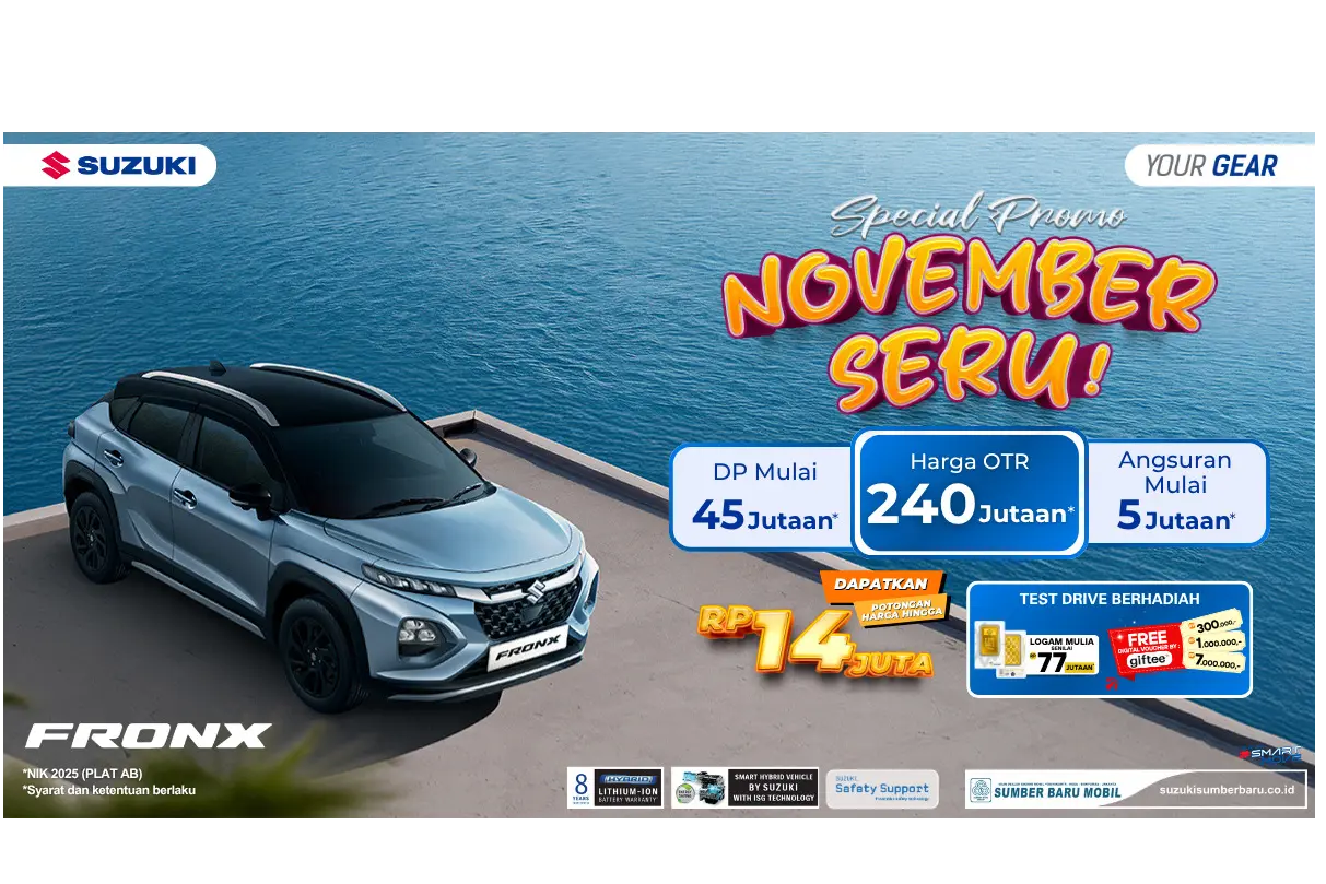 Penawaran Menarik untuk Pembelian Suzuki Para calon pembeli bisa menikmati berbagai keuntungan eksklusif, mulai dari DP ringan hanya 25%, bunga 0% hingga 8 tahun, serta diskon spesial untuk Nomor Identifikasi Kendaraan (NIK) 2024. Tidak hanya itu, pelanggan juga berhak mendapatkan layanan trade-in untuk semua merek mobil, sehingga lebih mudah memiliki mobil Suzuki terbaru.