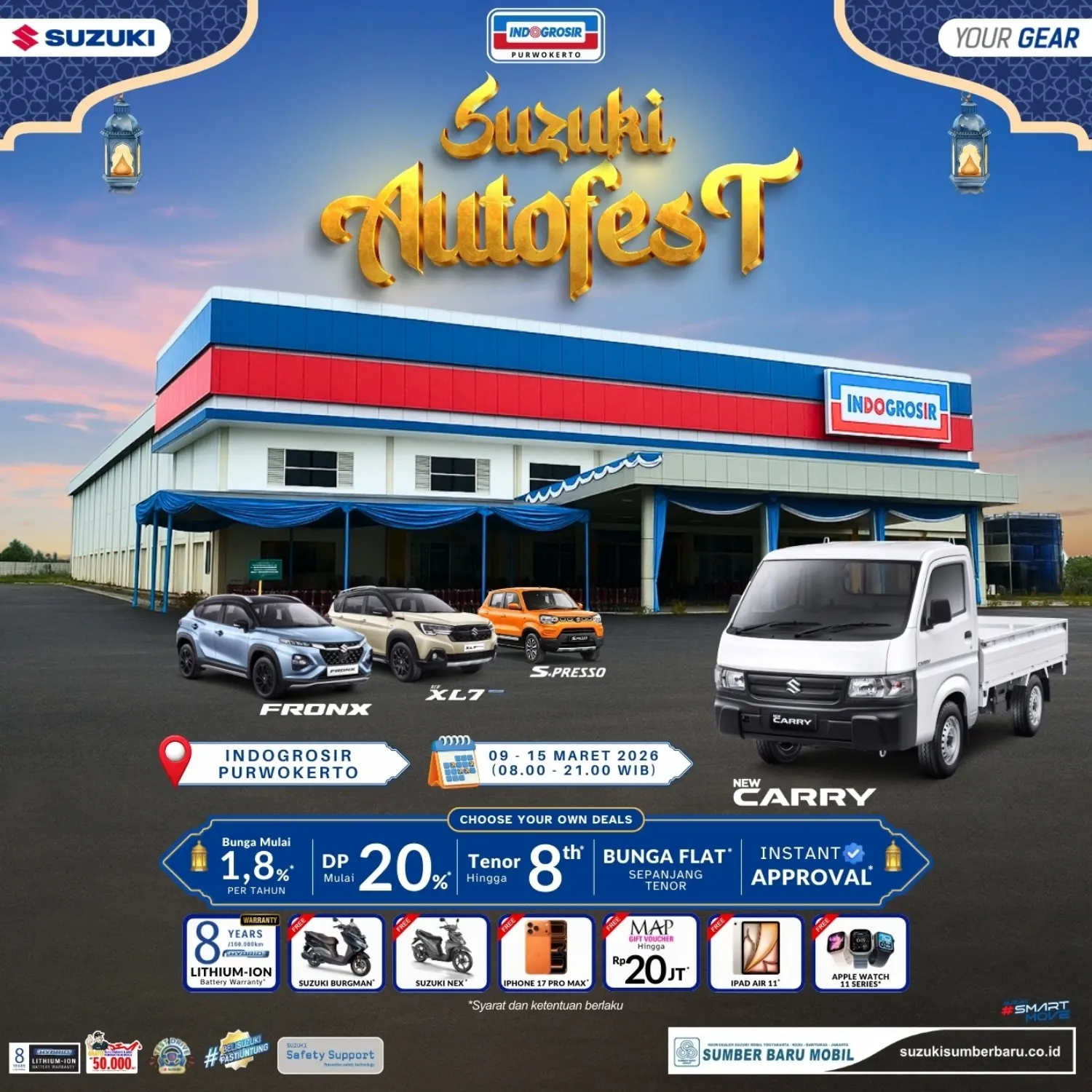 Suzuki Autofest Purwokerto 2026: Promo Bunga 1,8% dan Hadiah iPhone 17 Pro Max Menanti Anda!
