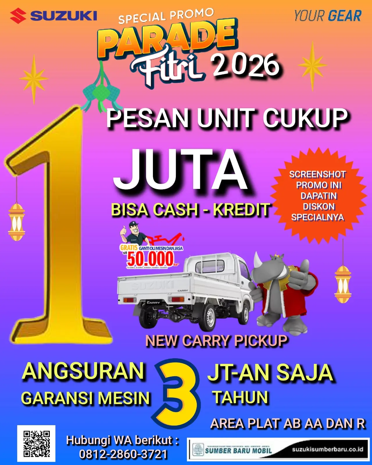 "New Carry Pick Up adalah mitra bisnis terbaik. Dengan promo 'Pesan 1 Juta', kami ingin membantu UMKM lokal untuk terus tumbuh dan berkembang, terutama di momen sibuk menjelang Lebaran tahun ini," ungkap perwakilan manajemen Suzuki Sumber Baru Mobil.