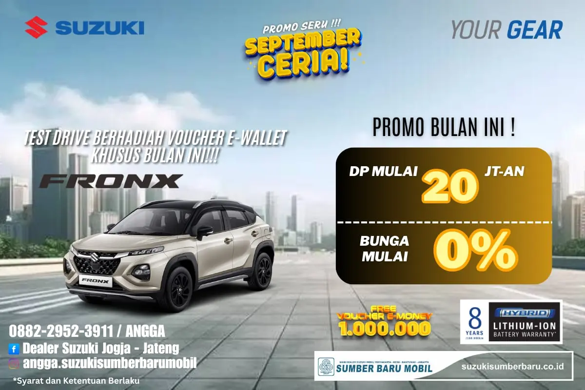 Suzuki kembali memanjakan pecinta otomotif di Bantul, Yogyakarta, dan sekitarnya dengan menghadirkan program spesial Promo September Ceria 2025. Kali ini, giliran Suzuki Fronx yang menjadi pusat perhatian berkat desain modern, teknologi hybrid, dan penawaran super hemat.