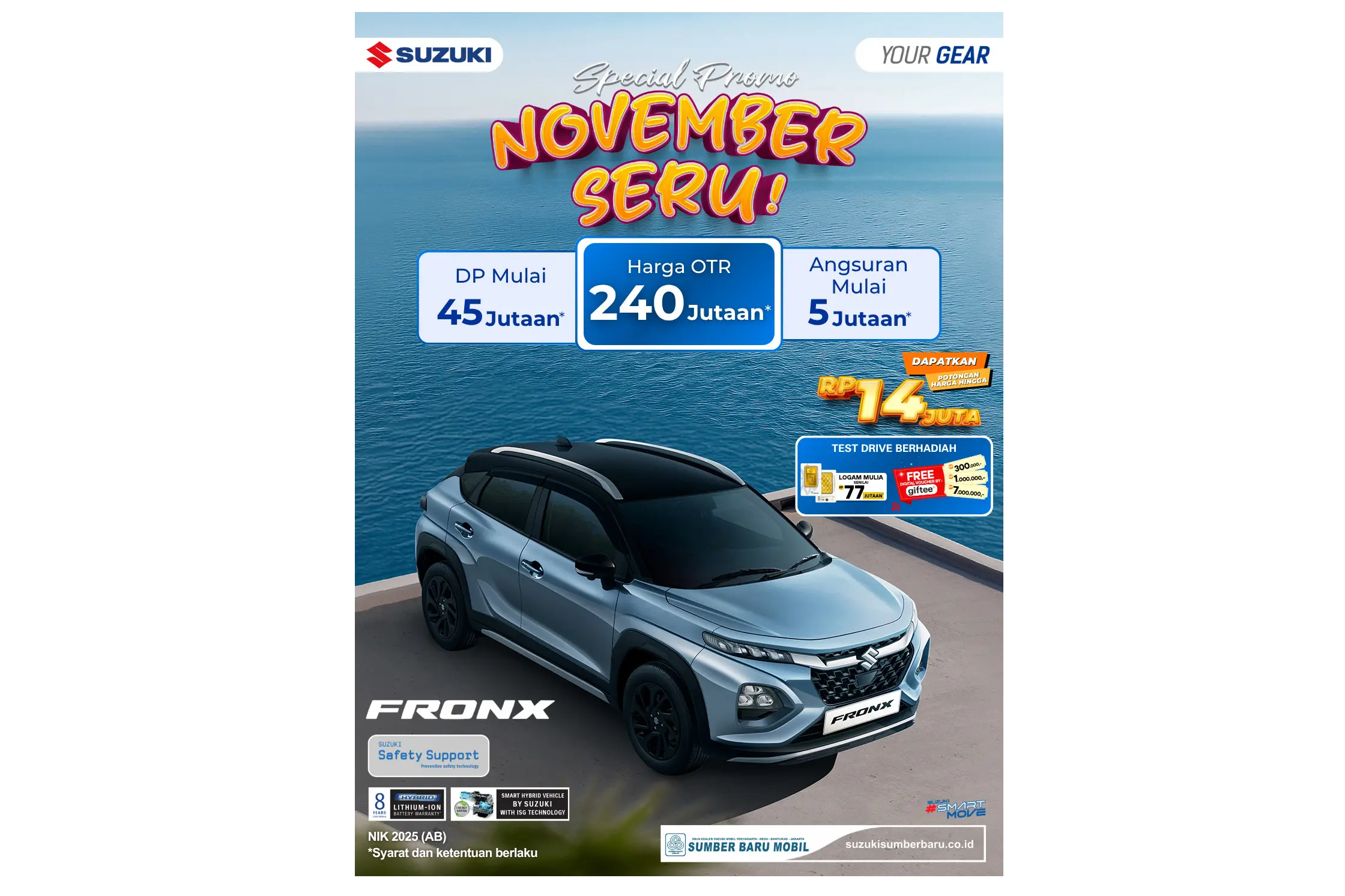 Promo Suzuki Fronx Bantul! DP Mulai 20 Jutaan, Bunga 0% + Bonus Voucher Rp1 Juta