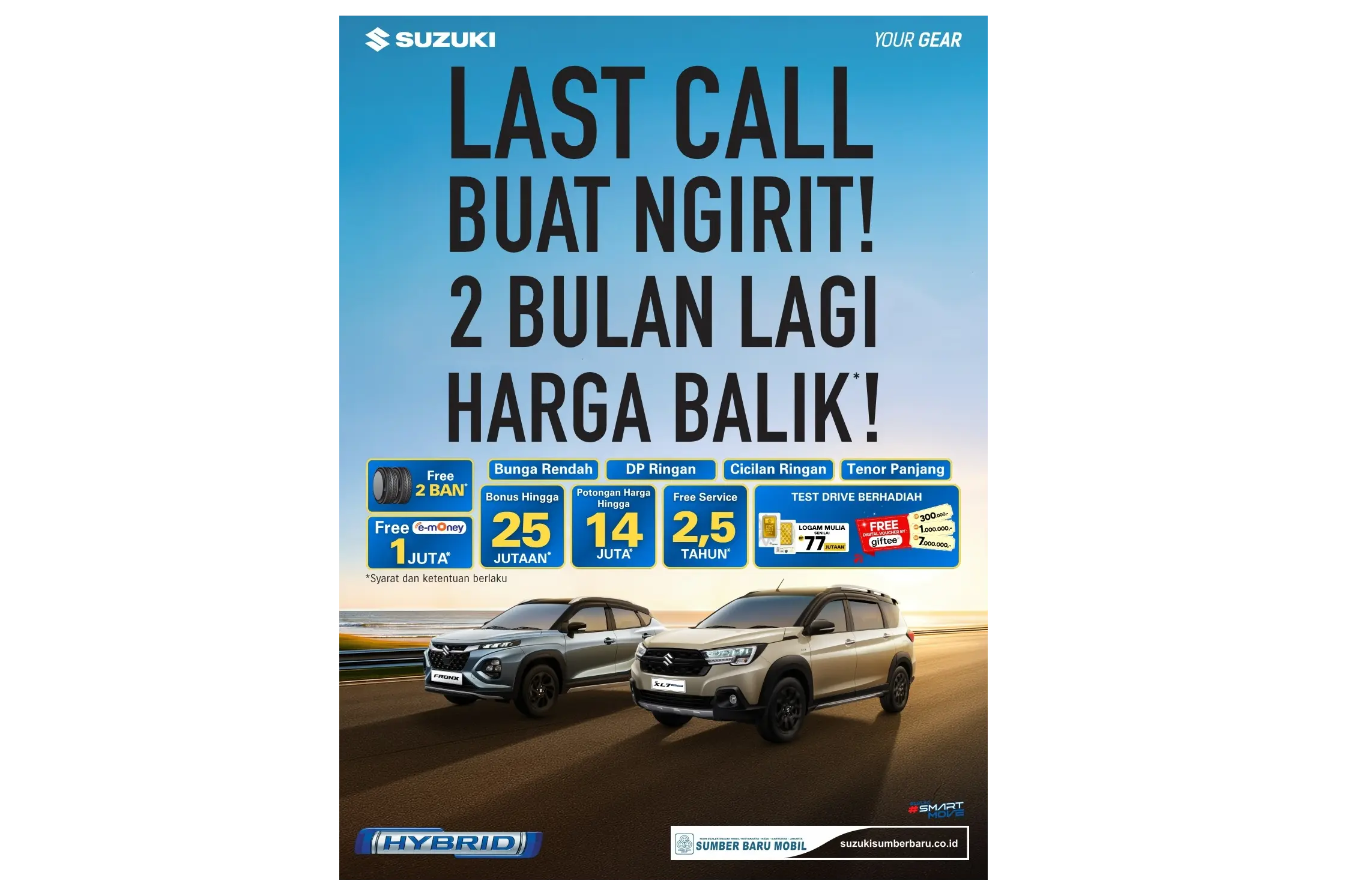 Di bulan kemerdekaan ini, Suzuki menghadirkan program spesial “MERDEKA NGEGAS!” yang bisa langsung kamu nikmati di Dealer Resmi Suzuki Tegalrejo - Sumber Baru Mobil, mulai sekarang hingga akhir Agustus 2025.
