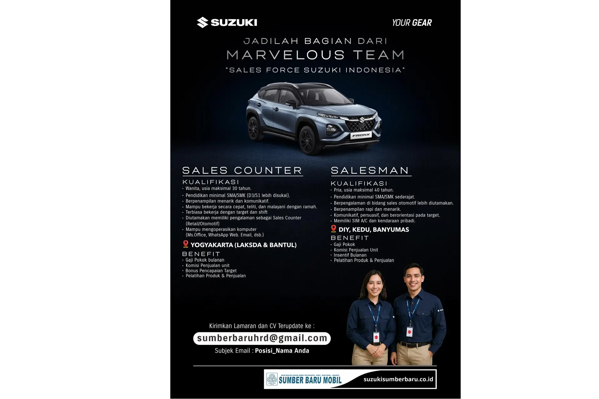Yogyakarta – Suzuki Sumber Baru Mobil kembali menghadirkan promo spesial bagi masyarakat Yogyakarta, Kedu, Banyumas, Cilacap, Banjarnegara, Kebumen, Purwokerto, Purworejo, Wonosobo, Magelang, Sleman, Bantul, dan Wonosari. Dalam rangka menyambut momen spesial bulan suci, Ramadhan Night Sale siap memberikan berbagai keuntungan menarik bagi pelanggan setia Suzuki.
