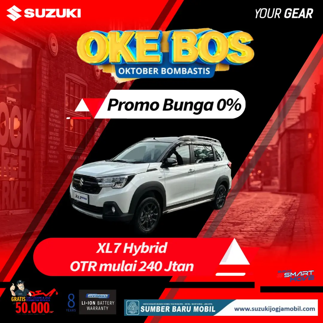 MLATI, SLEMAN – Pasar otomotif di kawasan Sleman dan Yogyakarta Utara dibuat heboh dengan diluncurkannya promo "OKE BOS" (Oktober Bombastis) dari Suzuki Sumber Baru Mobil Mlati. Ini bukan sekadar promo diskon biasa, melainkan sebuah penawaran finansial paling cerdas tahun ini: PROMO BUNGA 0% untuk pembelian SUV 7-seater andalan, Suzuki XL7 Hybrid.