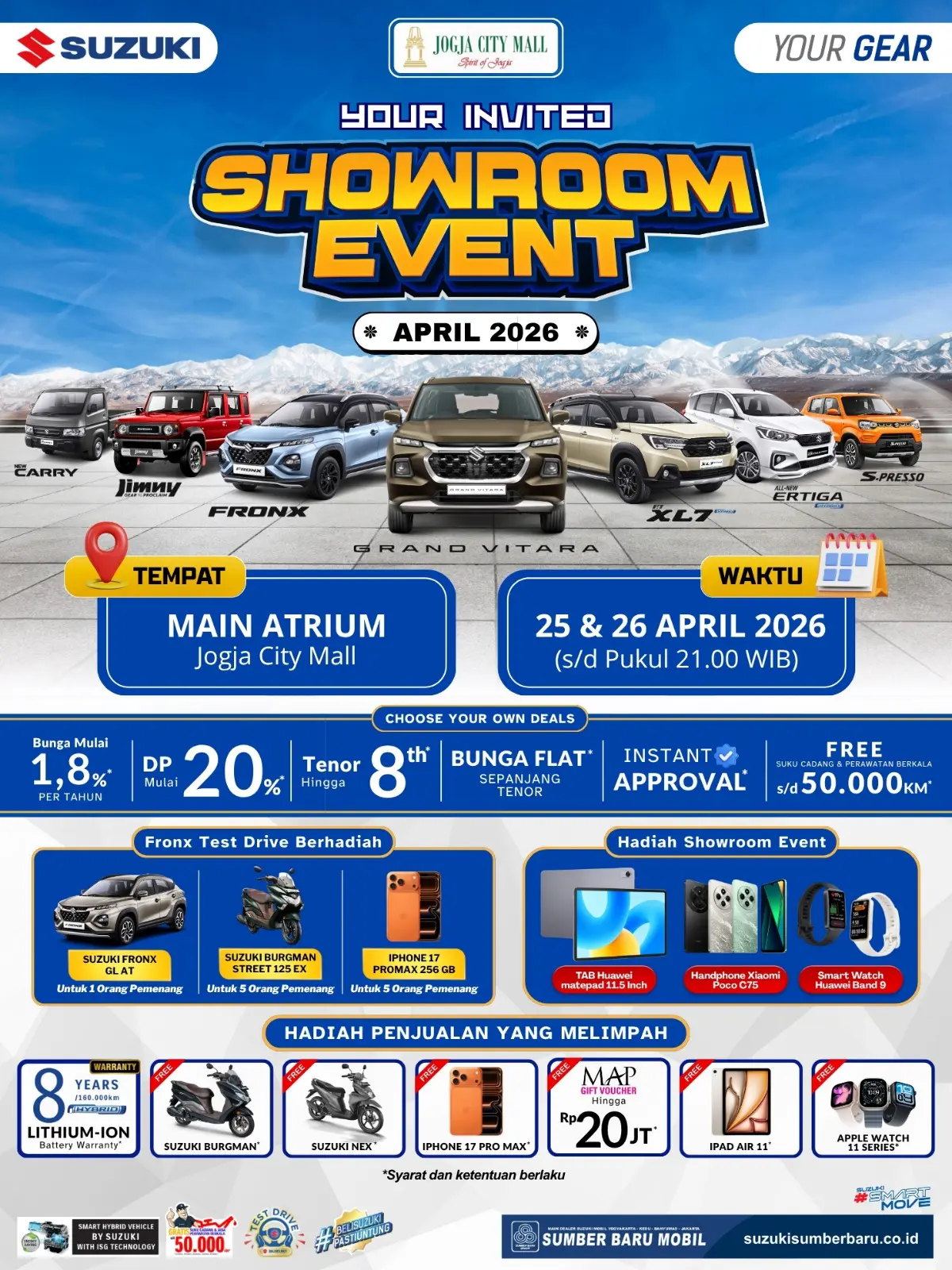Sambut Lebaran dengan Mobil Baru! Suzuki Showroom Event di Jogja City Mall: Ada Hadiah Suzuki Fronx & iPhone 17 Pro Max