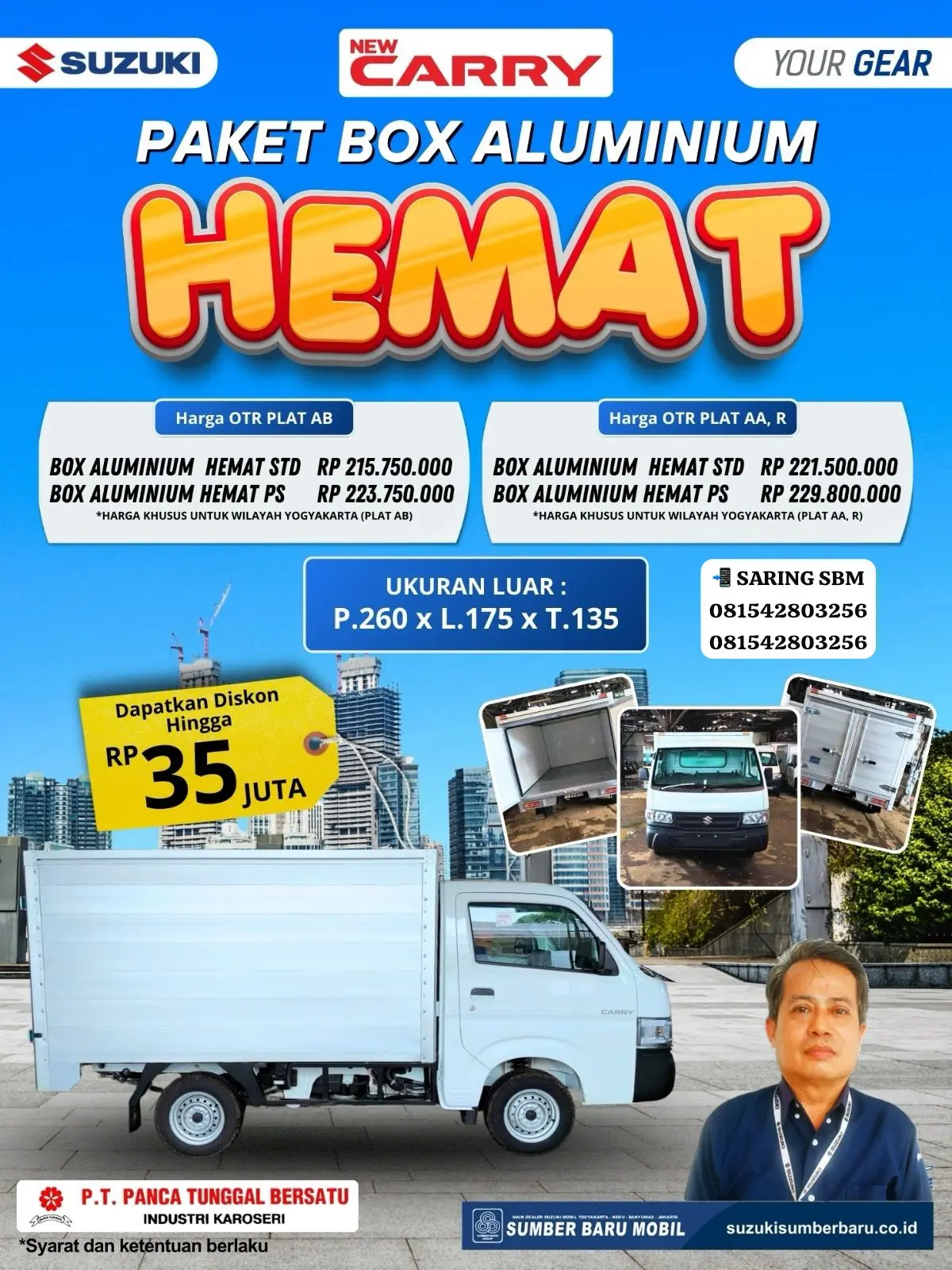 Solusi Bisnis Cuan! Suzuki Sumber Baru Mobil Kroya Tebar Promo New Carry Box Aluminium, Diskon Tembus Rp35 Juta
