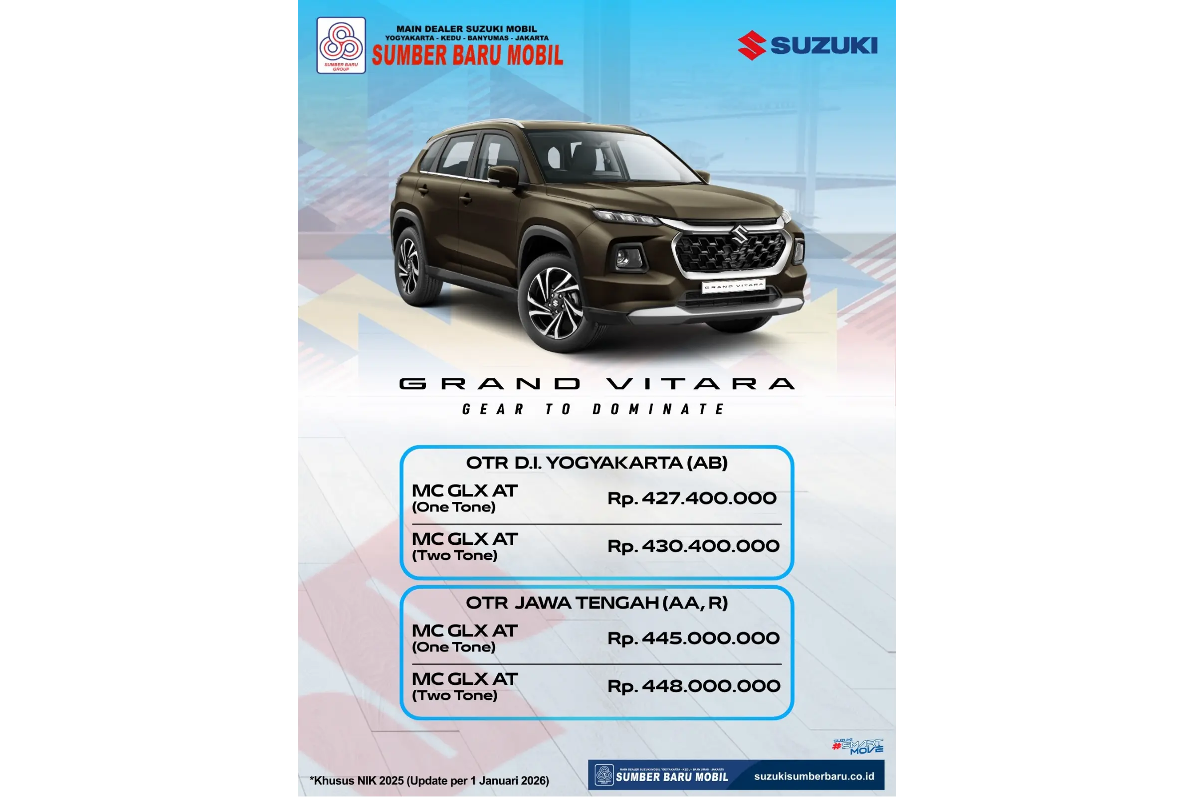 Promo Suzuki Grand Vitara 2024 Jogja: DP 21 Juta, Diskon 43 Juta + Voucher Belanja 5 Juta di Suzuki Tegalrejo Sumber Baru Mobil