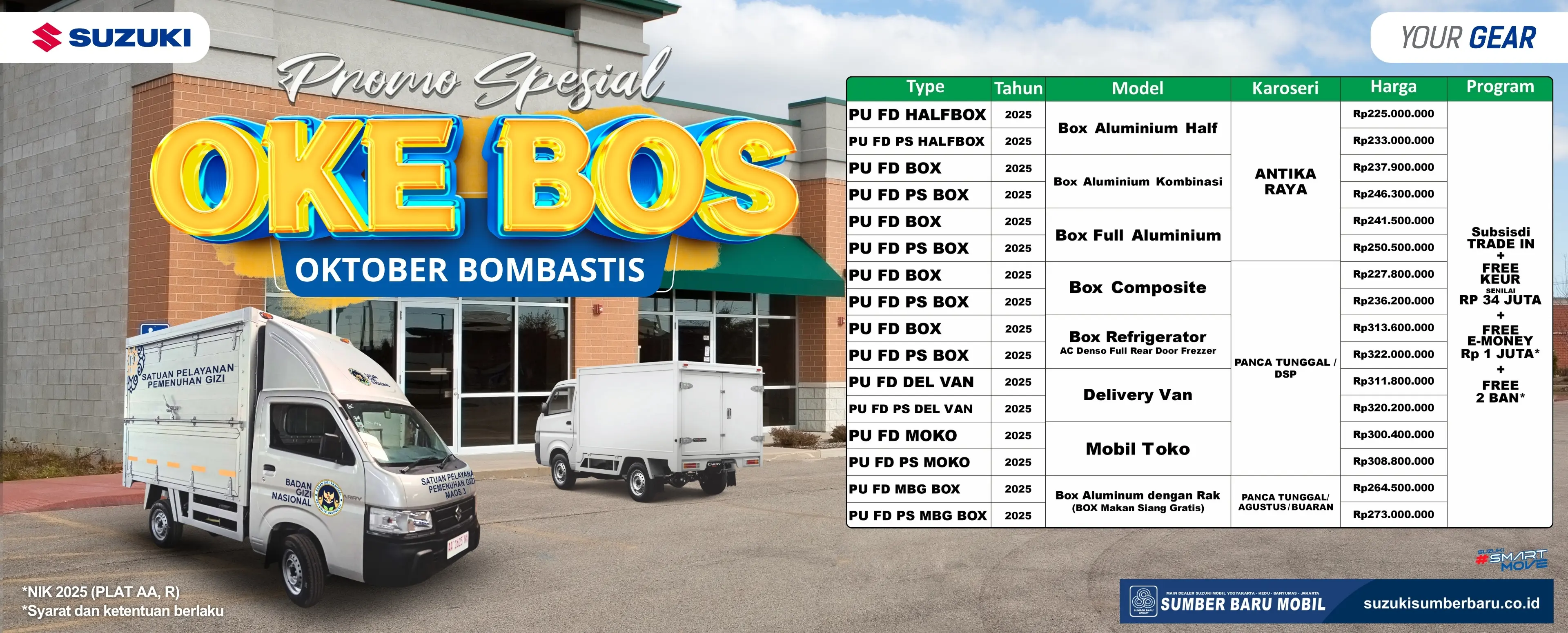 Promo Oktober Bombastis hanya berlaku hingga akhir bulan ini. Jangan lewatkan kesempatan untuk memiliki kendaraan niaga paling laris dengan harga dan bonus terbaik.