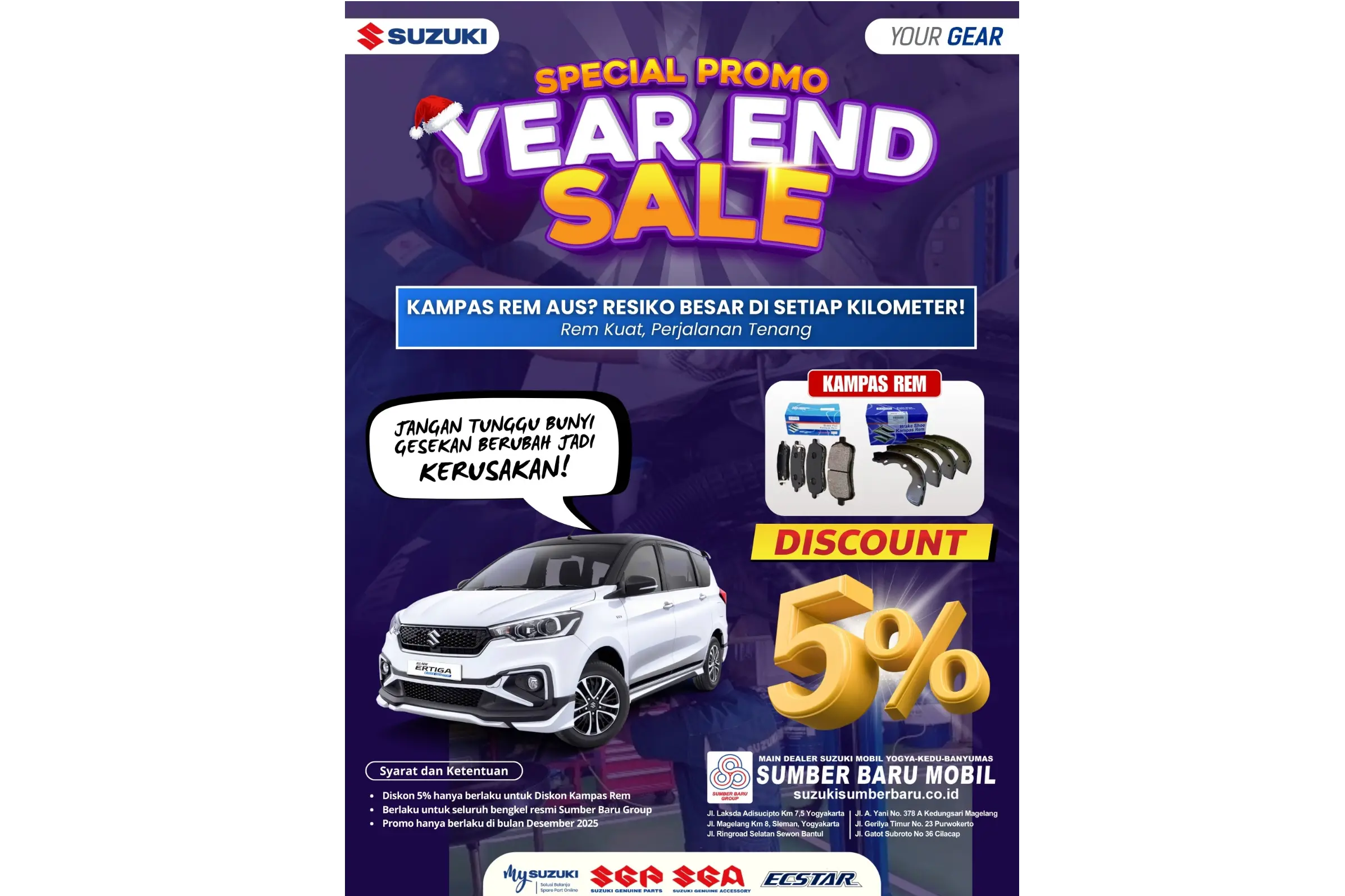 Dengan promo ini, kamu tak perlu khawatir soal biaya perawatan berkala, karena Suzuki memberikan gratis jasa service dan oli hingga 50.000 KM. Ini tentu menjadi solusi tepat untuk memastikan kendaraanmu selalu dalam kondisi prima tanpa harus merogoh kocek lebih dalam.