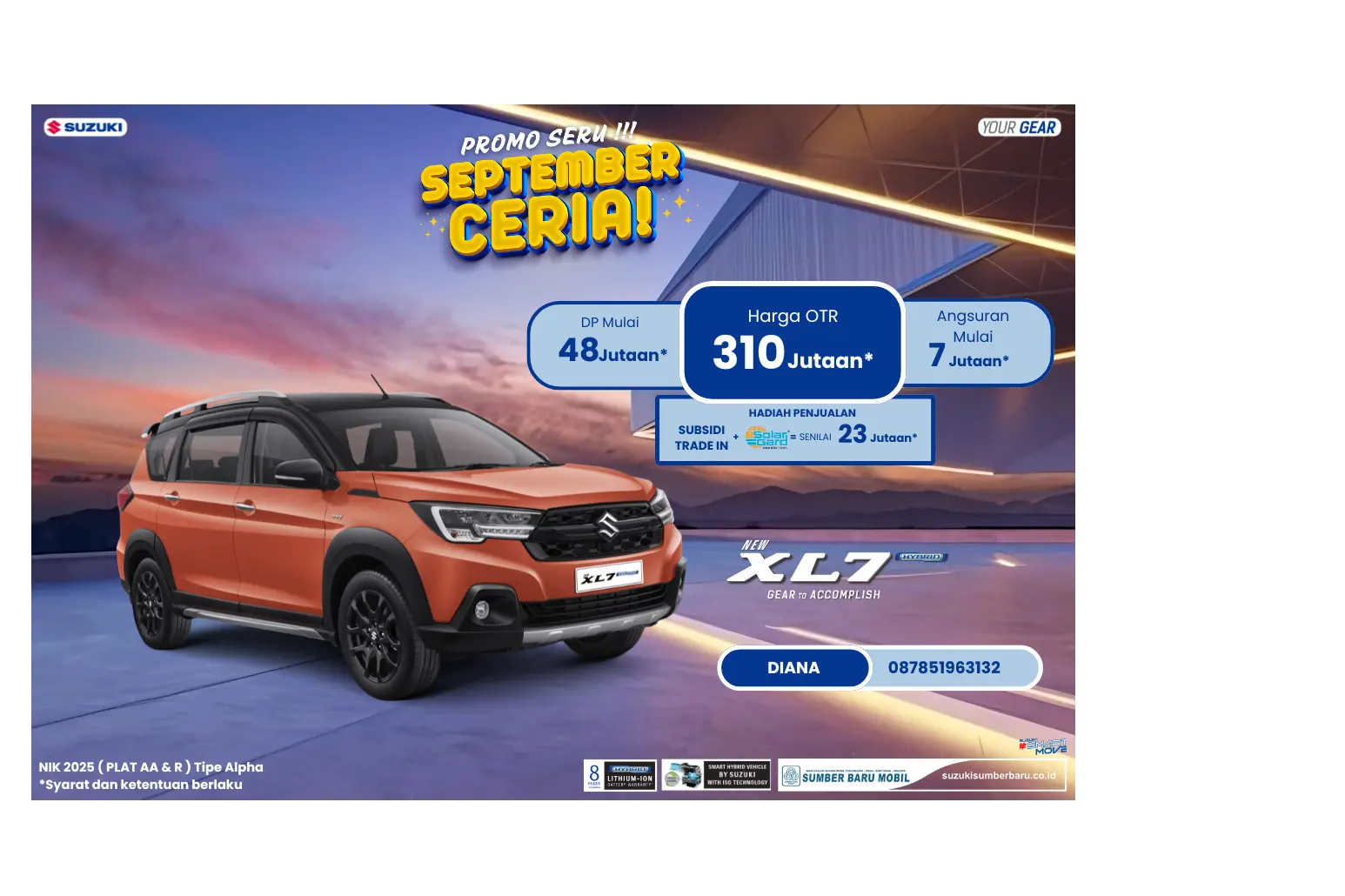 Jangan lewatkan kesempatan memiliki SUV Hybrid eksklusif Suzuki XL7 Hybrid Alpha Kuro dengan promo terbatas ini.
